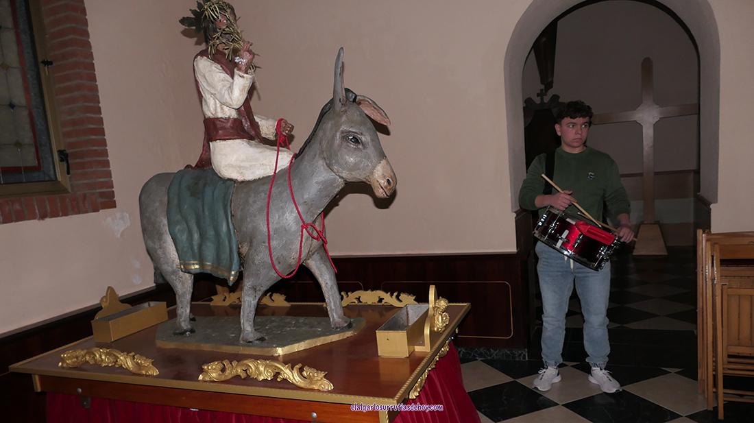 El siguiente capítulo fue invitar a todos los vecinos a participar en los actos de la Pasión e Jesucristo, que comenzarán con el Miserere, continuando con el Vía Crucis, la procesión del Domingo de Ramos con la burrica y el traslado de tronos del Lunes Santo hasta llegar al Jueves Santo, día de la 'Procesión del silencio', jornada que ocupa todo el día, desde los areglos florales hasta la salida de los tronos y el recorrido por las calles algareñas "a golpe de tambor para expresar un relato a través de las imágenes. Las calles se llenan de un silencio, que sólo rompe la desgarradora voz de la saeta, el cantar entre el dolor y el delirio", expuso, para hacer un alto en su pregón para escuchar en la iglesia al saetero Francisco Campos 'El Mone'.