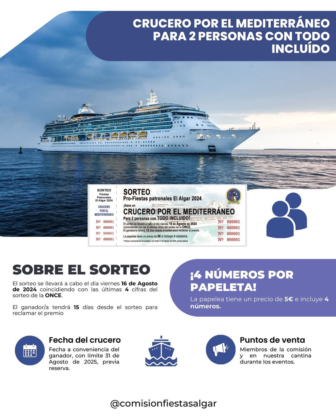 Por otro lado, sigue la rifa de dos plazas para disfrutar de un crucero por el Mediterráneo: