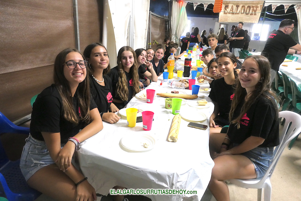 El grupo de 'Los forasteros', bajo su ambienten del 'western' americano, abarcan a sesenta integrantes en su segundo año de andadura. La peña festera de El Algar ha aumentado la cifra de componententes, especialmente niños pequeños.
