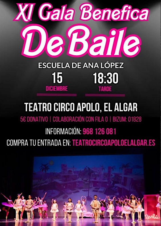 Gala benéfica en favor del alzhéimer el domingo,15 de diciembre en El Algar. El Teatro Circo Apolo acoge un exhibición de danza con bailes de Barbie para ayudar a la asociación Afal. Esta actividad solidaria cuenta con el impulso del Ayuntamiento de Cartagena y la colaboración de la escuela de danza Ana López.