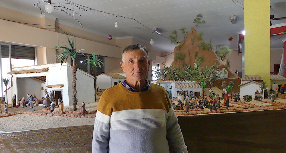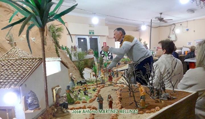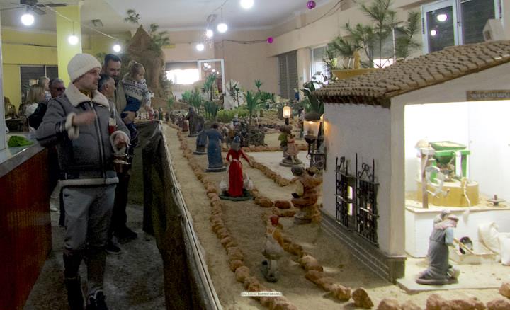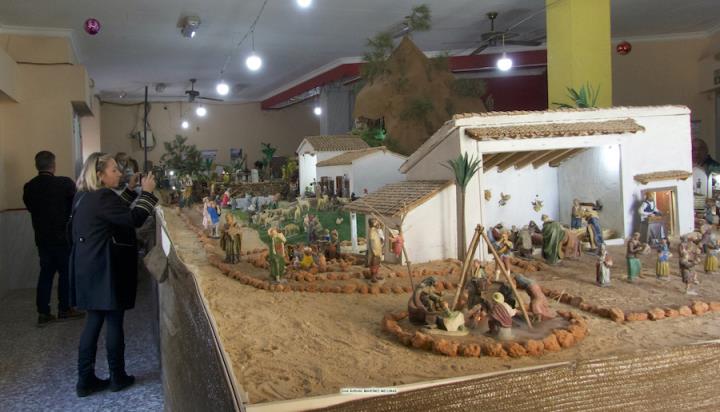 El acto de inauguración del tradicional Belén ubicado en en el antiguo Bar El Parque, cerca de la iglesia de Nuestra Señora de los Llanos, se llevó a cabo ayer con presencia del párroco, Antonio Guillén Campillo, que fue el encargado de su bendición, y del presidente de la Junta Vecinal Municipal de El Algar, Salvador García, y del autor, quienes fueron los encargados del corte de la cinta inaugural.
