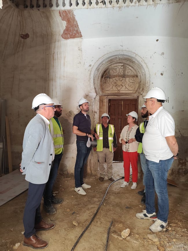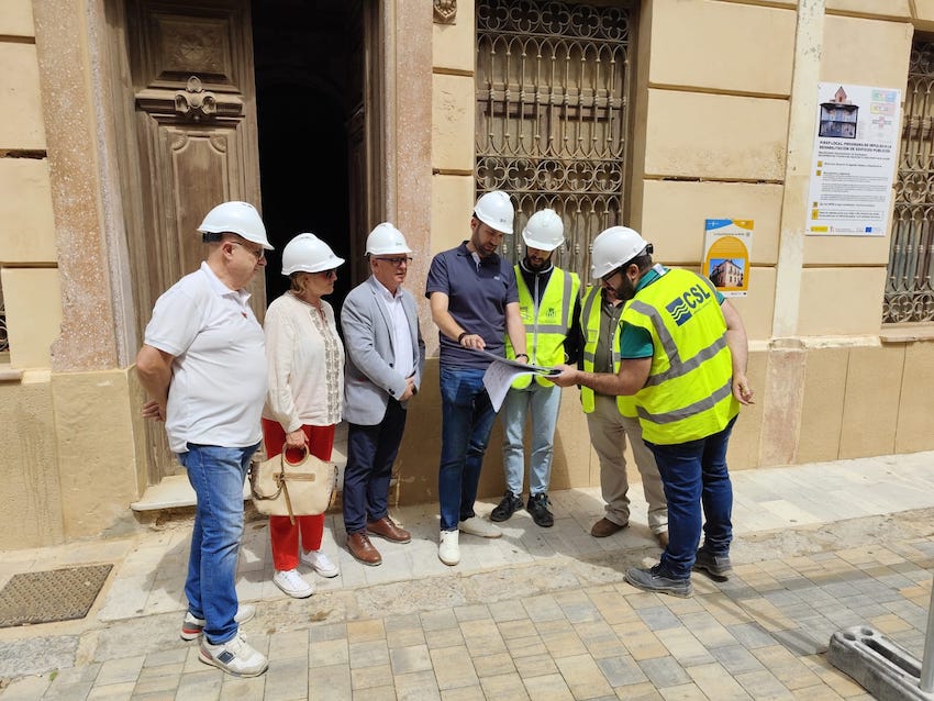 Una representación de la Junta Vecinal Municipal y de la Asociación de Vecinos de El Algar, han estado hoy, junto a técnicos municipales, en el emblemático edificio con la empresa constructora en el inicio de los trabajos. El tiempo de ejecución fijado es de 14 meses.