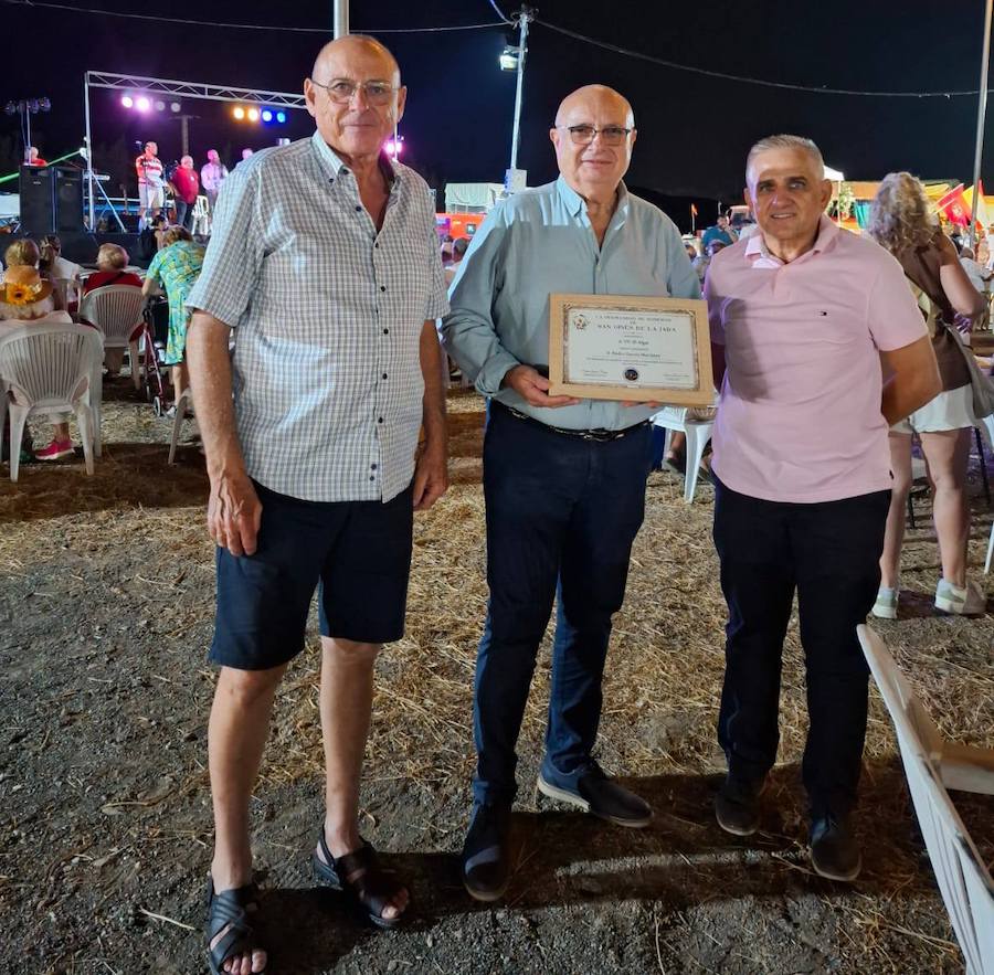 La romería de San Ginés de la Jara, en su epílogo en la fiesta final de la explanada junto a la autovía de La Manga, llevó a cabo distintas la entrega de distinciones, entre las que figuró la recibida por la Asociación de Vecinos de El Algar por su colaboración en la escala llevada a cabo por los peregrinos para efectuar la ofrenda floral a la Virgen de los Llanos.