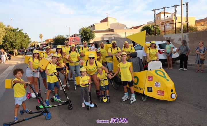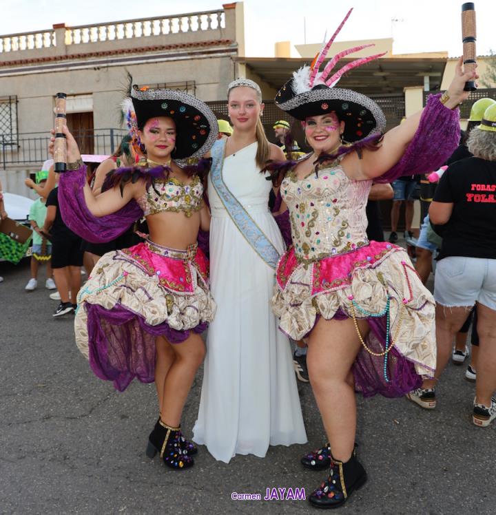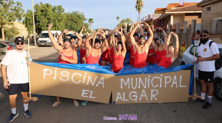 El sábado se celebró la simpática marcha de las fiestas de El Algar en la que grupos y particulares cruzan el pueblo con simpáticos vestuarios, que en esta ocasión fueron desde el 'top manta' hasta 'los piscineros' de la ausente piscina municipal. El cortejo fue cerrado por la carroza con la corte real.