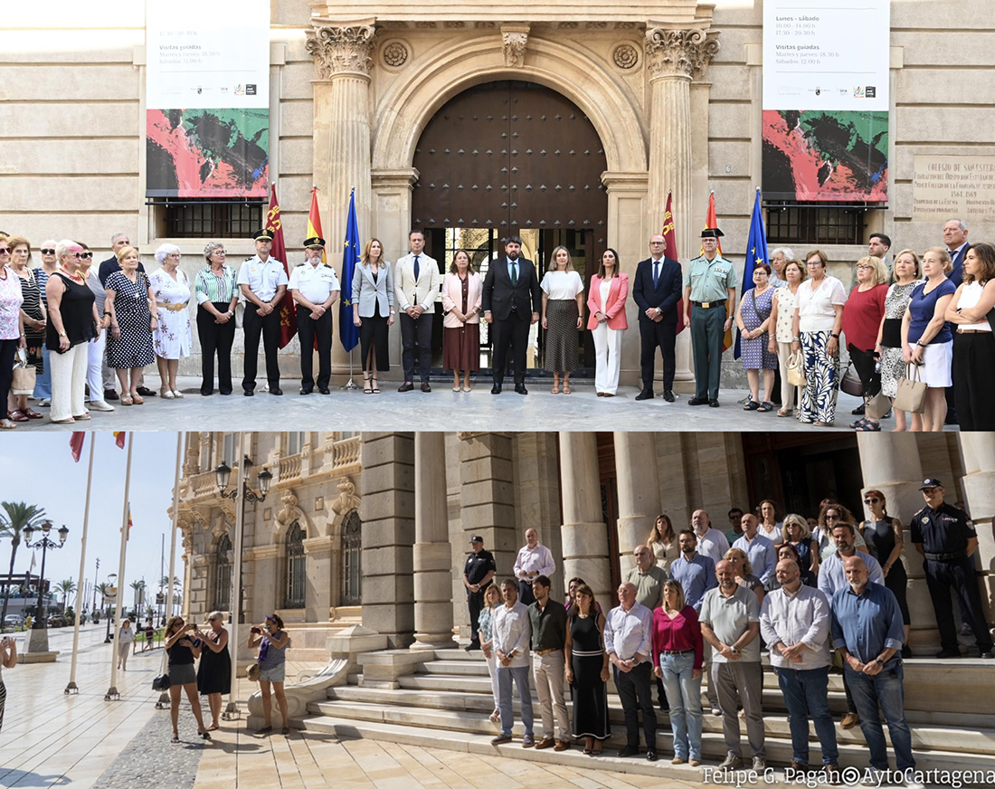 La otra concentración ha tenido lugar en la ciudad de Murcia con presencia del presidente autonómico, López Miras, e integrantes de su equipo de gobierno, además de la presidenta de la Asamblea Regional, Visitación Martínez, y de representantes de la Policía Nacional. En ambos casos se han sumado varias decenas de ciudadanos.