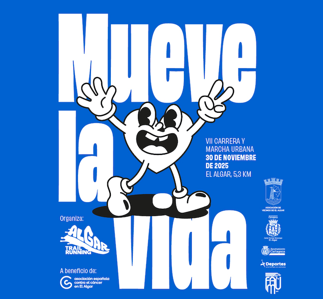 3. La carrera y marcha urbana 'Mueve la vida' se celebrará el 30 de noviembre sobre una distancia de 5,3 kilómetros por las calles de El Algar. Organiza Club Trail Running Algar y los beneficios se destinarán a la AECC (Asociación Española contra el Cáncer). Inicio: 11 horas. Salida y meta en avenida de Filipinas, junto a la plaza de José María Serrano.