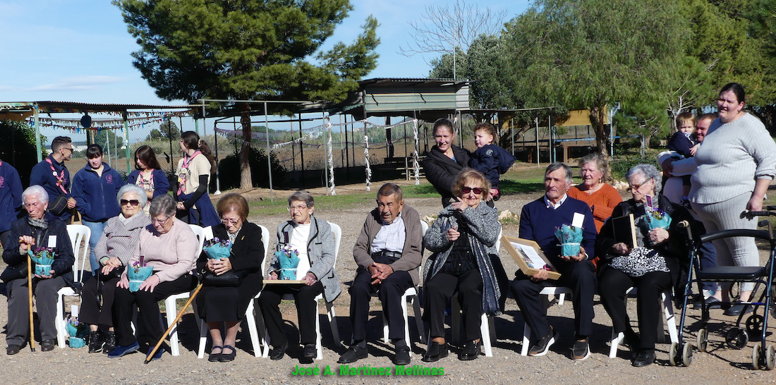 Integrantes de la Asociación Virgen de los Llanos hicieron posible que El Algar tenga el recinto de la romería. Fue en los años noventa del pasado siglo y este espacio se ha convertido en un lugar emblemático para el pueblo y su gente. En muestra de gratitud, el grupo scout 'Alba 601' ha rendido un más que merecido homenaje.