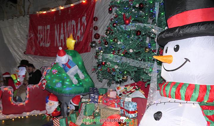 El domingo no se pudo inaugurar la casa y el taller de Papá Noel debido a la presencia de la lluvia, pero ello no indicaba que el popular 'Santa' no iba a estar este año en El Algar, simplemente demoró un día su llegada. Fue en la tarde de ayer cuando, con su señora y sus elfas, efectuó la puesta de largo. Esta vez no hubo desfile previo y sí una espera de media hora hasta que abrieron las puertas, pero en cuanto el presidente de la Asociación de Vecinos de El Algar, Pedro García, efectuó la cuenta atrás con todos los presentes, la iluminación se activó, al igual que el júbilo de los asistentes por acceder a un recinto cautivador en Navidad.