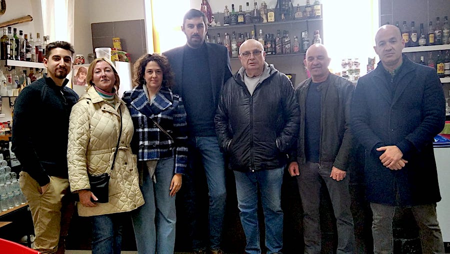 El presidente regional de la formación, José Ángel Antelo, acompañado por diputados regionales y ediles de Cartagena, ha visitado hoy el pueblo algareño donde en las últimas fechas se han producido un asesinato y varias noches de quema de contenedores, relacionando esos y otros sucesos con la apertura de fronteras, remarcando que esa inseguridad tiene “los nombres y apellidos de PSOE y PP”, además de prometer que limpiará "las calles de gentuza" cuando su partido llegue al poder. En la foto se le observa en el centro, junto a compañeros de partido y al presidente de la asociación de vecinos, en el Hogar del Pensionista