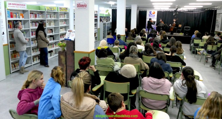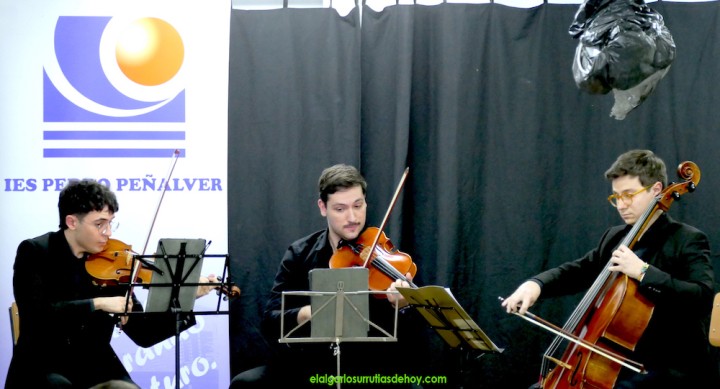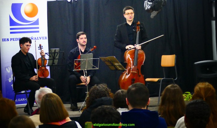 A continuación, un trío de cuerda ofreció un breve (y muy bueno) concierto musical. Antonio de Paco, uno de sus componentes y que estuvo como profesor en el IES Pedro Peñalver, resaltó que tanto la música como los libros "nos transportan a otros mundos".