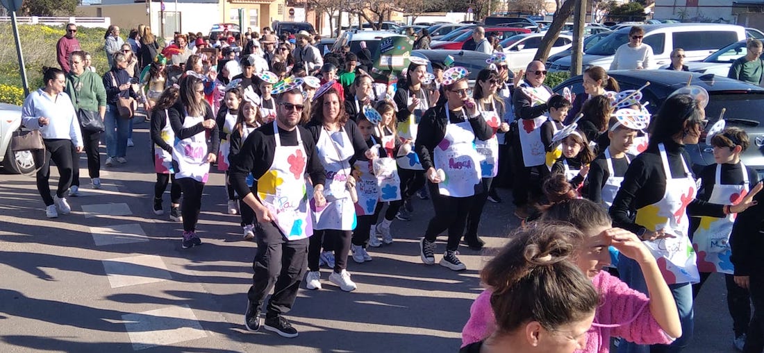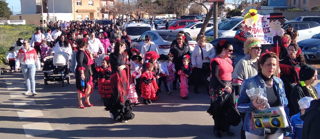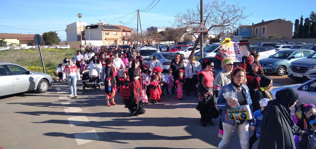 El colegio de San Isidoro de El Algar ha celebrado en esta soleada mañana el desfile de carnaval por las calles del pueblo, ofreciendo una colorida variedad de disfraces y estando encabezada la marcha por dos integrantes de la comparsa Salgueiro.