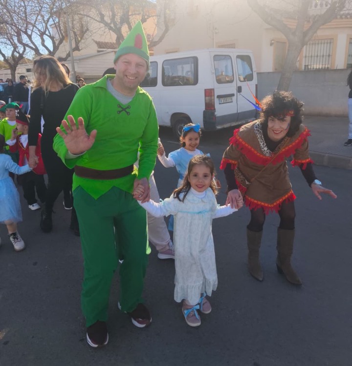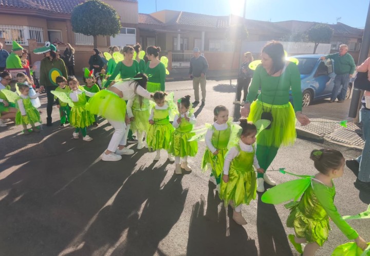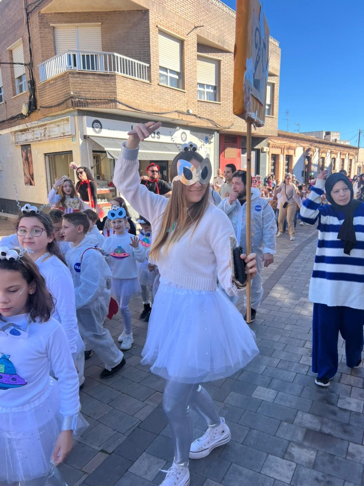 La representación del 'Óscar' (mote que un periodista le puso hace años a los galardones de la Academia de Hollywood) estuvo al frente de un animado recorrido por El Algar del colegio Virginia Pérez, en un martes de carnaval histórico, pues este desfile se fundió con el que organizó por el CEIP San Isidoro, potenciando la alegría por las calles del pueblo.