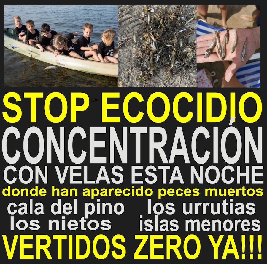 🐟 Convocan concentraciones con velas para esta noche en Los Urrutias, Los Nietos, Islas Menores y Cala del Pino con el lema ‘Stop ecocidio’ y para exigir ‘cero vertidos’