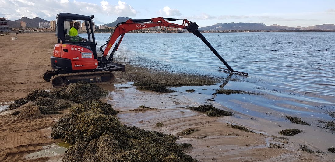 La concejalía de Infraestructuras y Litoral del Ayuntamiento de Cartagena ha vuelto a recurrir a la máquina rastrillo para retirar la biomasa de las playas. Se ha comenzado a utilizar en Playa Paraíso y en Los Alemanes, estando previsto para la próxima semana que actúe en Los Urrutias. La edil María Casajús afirma que la máquina está avalada por el comité científico del Mar Menor.