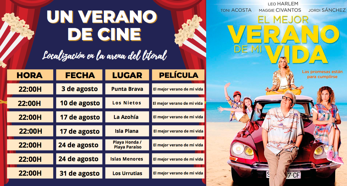 Punta Brava acoge esta noche la emisión, a partir de las 22 horas con entrada gratuita, de la comedia 'El mejor verano de mi vida', que se proyectará en Los Urrutias el día 31. Organiza el Ayuntamiento de Cartagena en colaboración con la Fundación Secuoya.