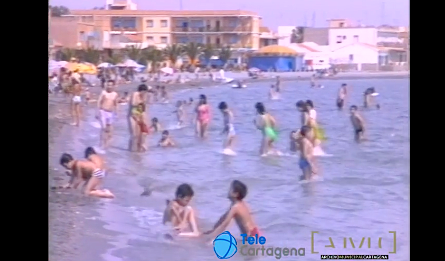 El Archivo Municipal de Cartagena ha rescatado un reportaje del año 1988 donde se observa poblada el arenal y la playa de Los Urrutias.