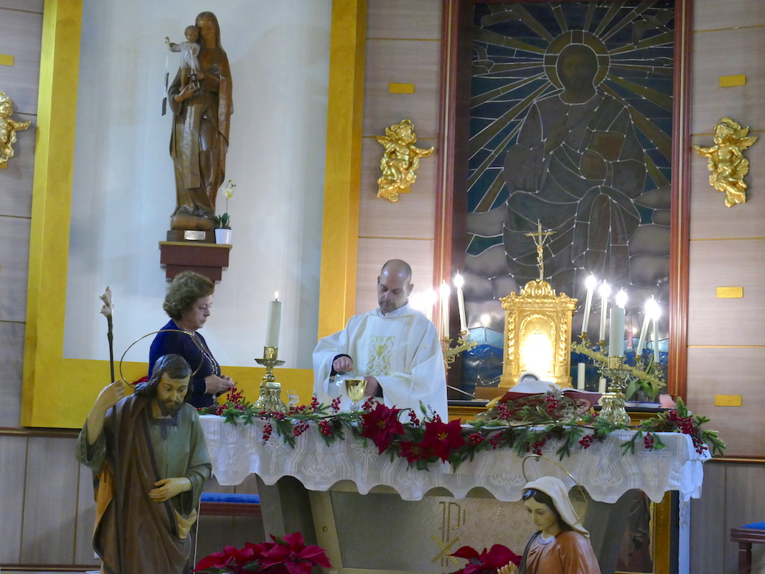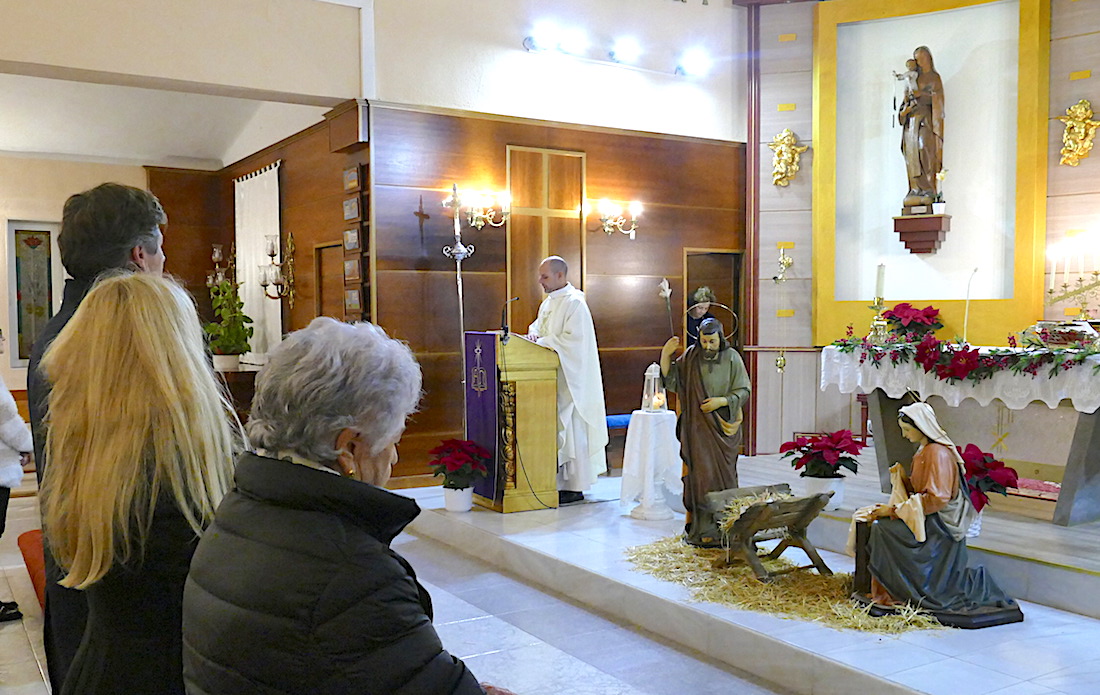 La parroquia de la Virgen del Carmen acogió la tradicional ‘misa del gallo’ que celebra el nacimiento de Jesús, sorteándose a su conclusión un talla del hijo de María, que irá a la casa de la ‘Señora Terry’, una mujer muy conocido en el pueblo, por decisión de su nieta, que fue la afortunada con el premio que dona Juan Pagán cada Nochebuena.