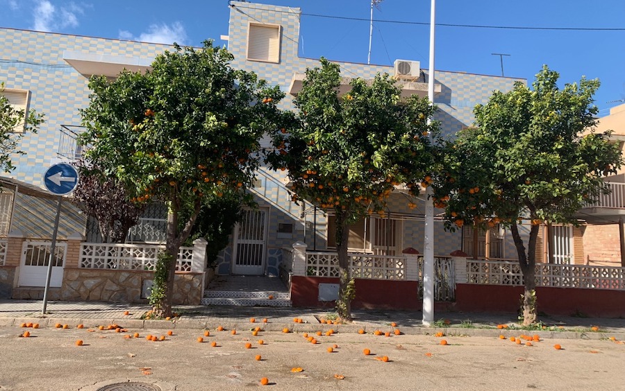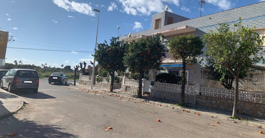 Un vecinos de Los Urrutias se ha dirigido a nuestro 'Buz贸n de los lectores' para expresar su malestar por la acumulaci贸n de estos c铆tricos que caen de los naranjos en calles como 脕ngel R贸denas y Mayor.
