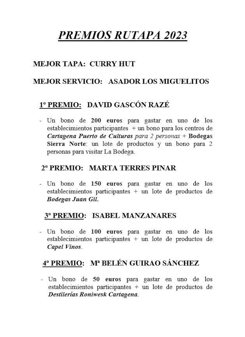 El producto elaborado por Curry Hut ha sido el que ha conquistado al jurado de la décimo primera edición de la senda gastronómica 2023, en la que asador 'Los Miguelitos' recibirá el galardón al mejor servicio, mientras que los premios para los usuarios han sido para David Gascón, Marta Terres, Isabel Manzanares y María Belén Guirao.