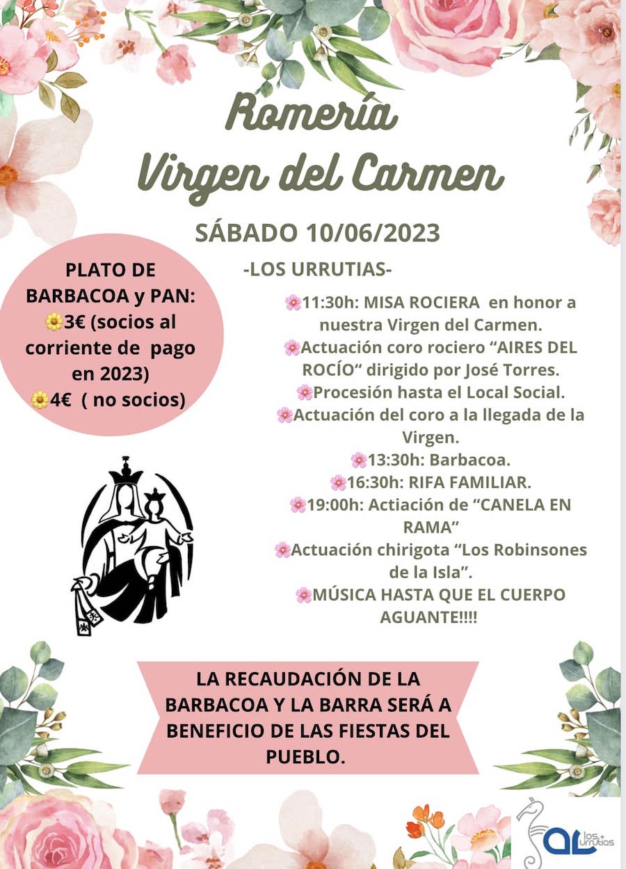 La jornada comenzará a las 11.30 horas con una misa rociera, con posterior marcha con la imagen de la Virgen del Carmen hasta la terraza del local social, en una mañana enriquecida por el coro rociero 'Aires del rocío'. Después hay barbacoa, rifa familiar y las actuaciones de 'Canela en rama' y de la chirigota de 'Los robinsones de La Isla'. El dinero que recaude la asociación de vecinos se destinará a las fiestas de verano.