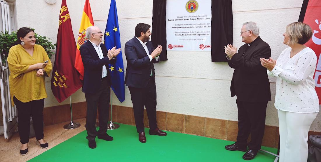Por su parte, López Miras, ha puesto en valor el recorrido de Cáritas, que "desde hace 70 años protege y ayuda al prójimo en nuestra tierra, y por ello tienen el agradecimiento del Gobierno y también nuestro compromiso por crear espacios llenos de oportunidades como el albergue campamento Los Urrutias".