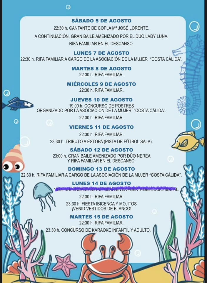 Continúan las rifas familiares en las veladas de la terraza del local social, a lo que se unirá este viernes una 'fiesta remember' con Juanma DJ, además de la copla de María José Lorente y el baile con dúo 'Lady Luna' el sábado.