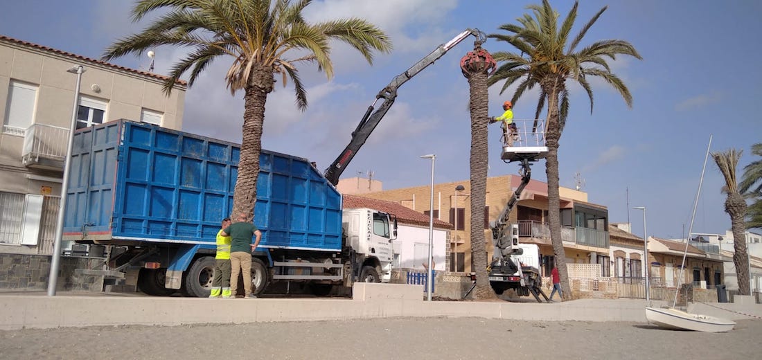 Estos días están talando palmeras en el paseo marítimo de Los Urrutias, como se observa en las fotografías adjuntas.