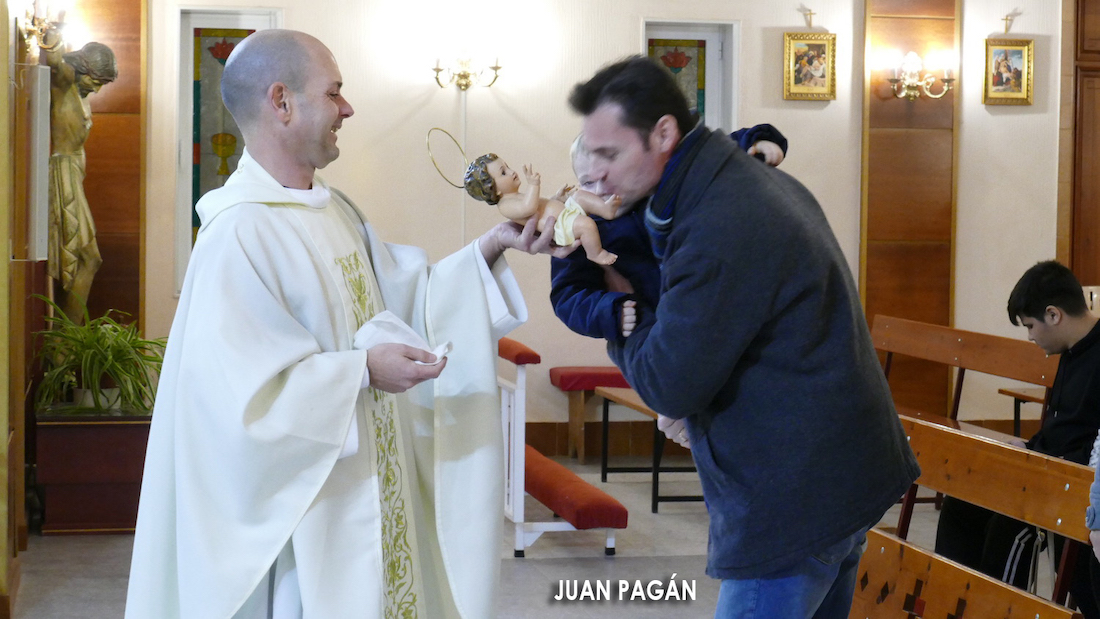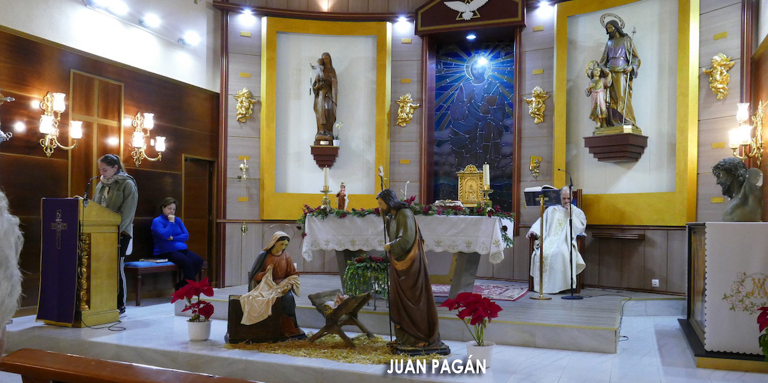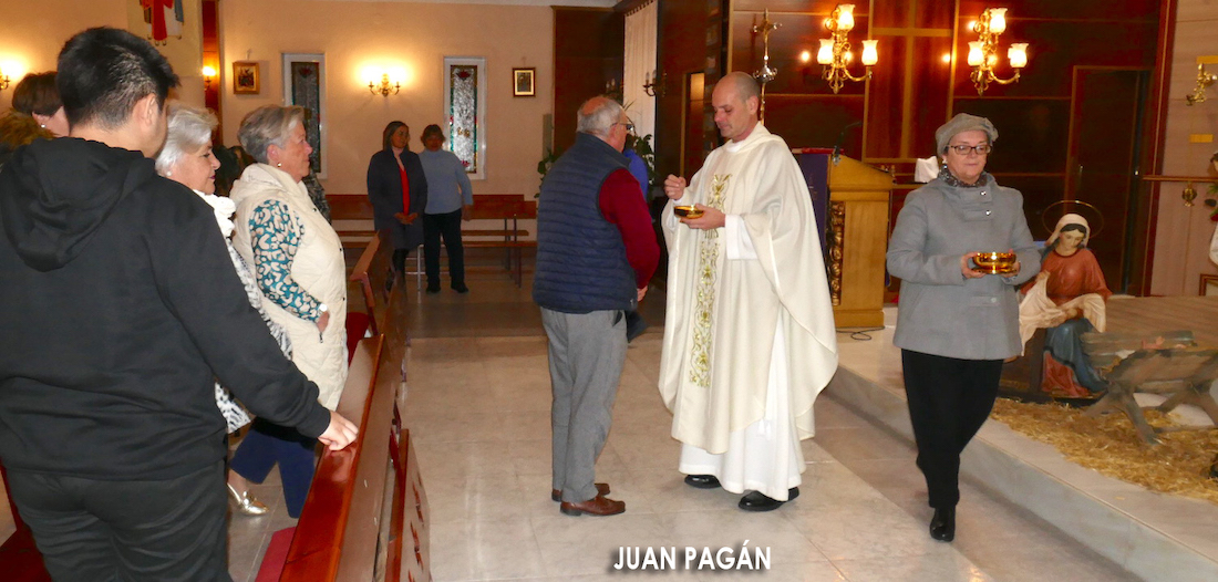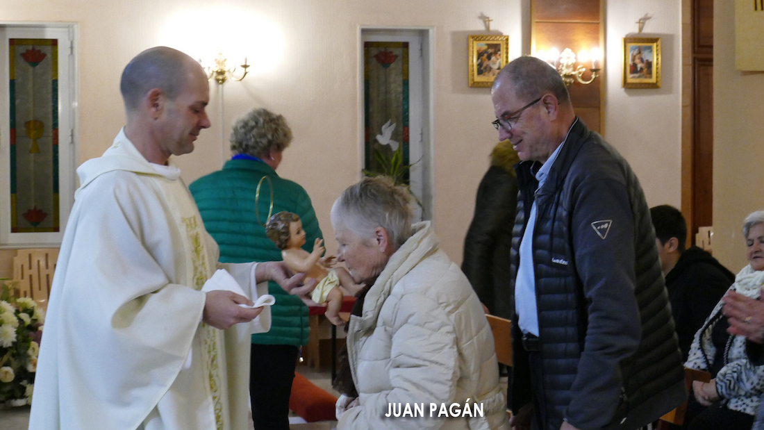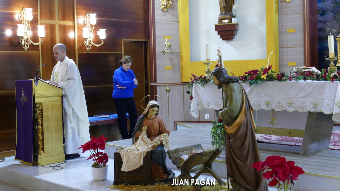 Varias decenas de personas asistieron a la tradicional 'misa del gallo' que fue oficiada en la parroquia marmenorense por el sacerdote Antonio Guillén Campillo en la tarde de Nochebuena, fecha en la que cada año la imagen del hijo de Maria es ubicada en el lugar de la representación de la Sagrada Familia en el portal de Belén, pues es la fecha en la que nace y no antes.