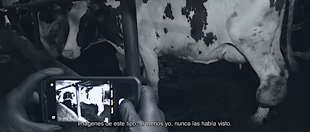 La “cinta” aporta algunos ejemplos del impacto de la ganadería intensiva en el entorno, entre ellos, la actividad de una macrogranja en La Región de Murcia. Se centra en los problemas del Mar Menor, debidos, entre otras cuestiones, a la contaminación del agua producida por la ganadería intensiva. En concreto, por la cantidad de excrementos de cerdos en el agua que hace aumentar los niveles de nitratos. Como consecuencia, millones de peces y crustáceos mueren por falta de oxígeno.