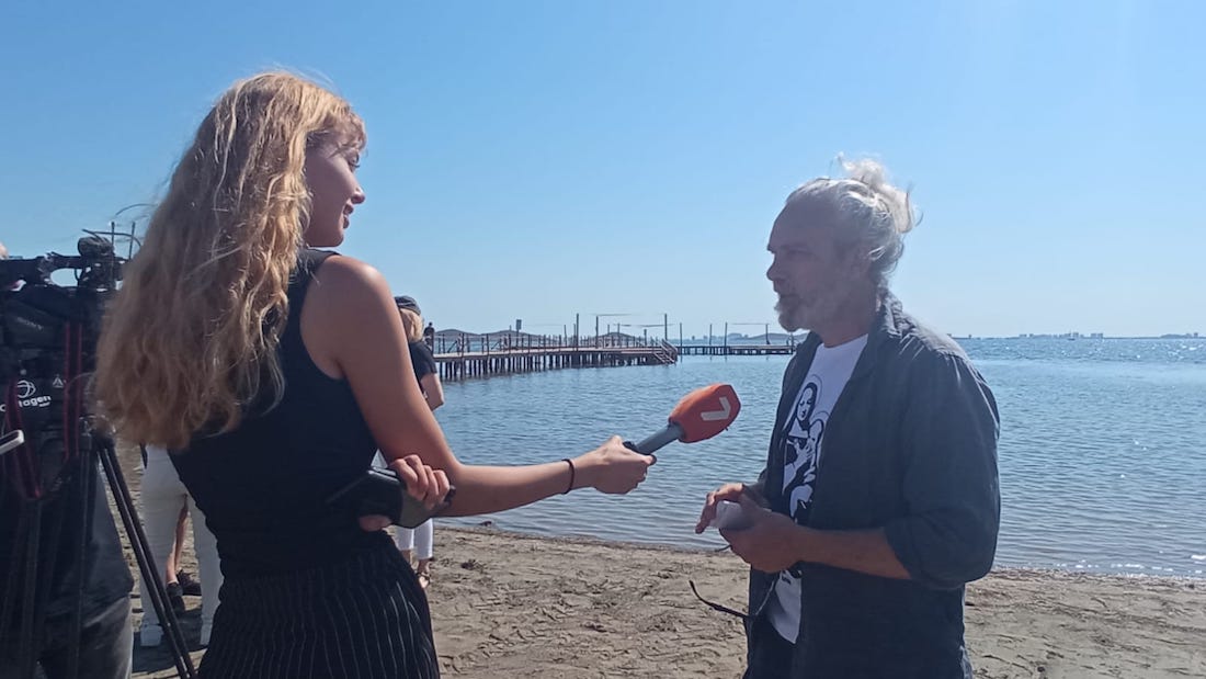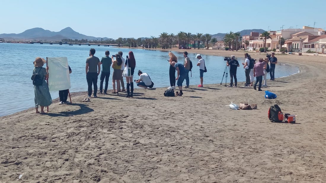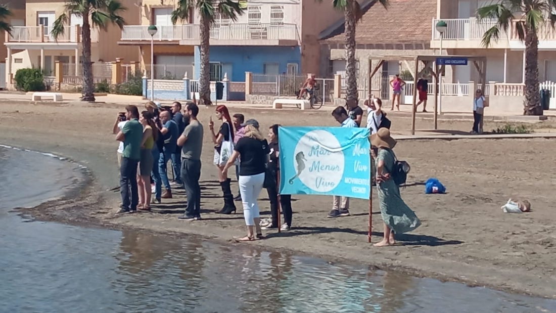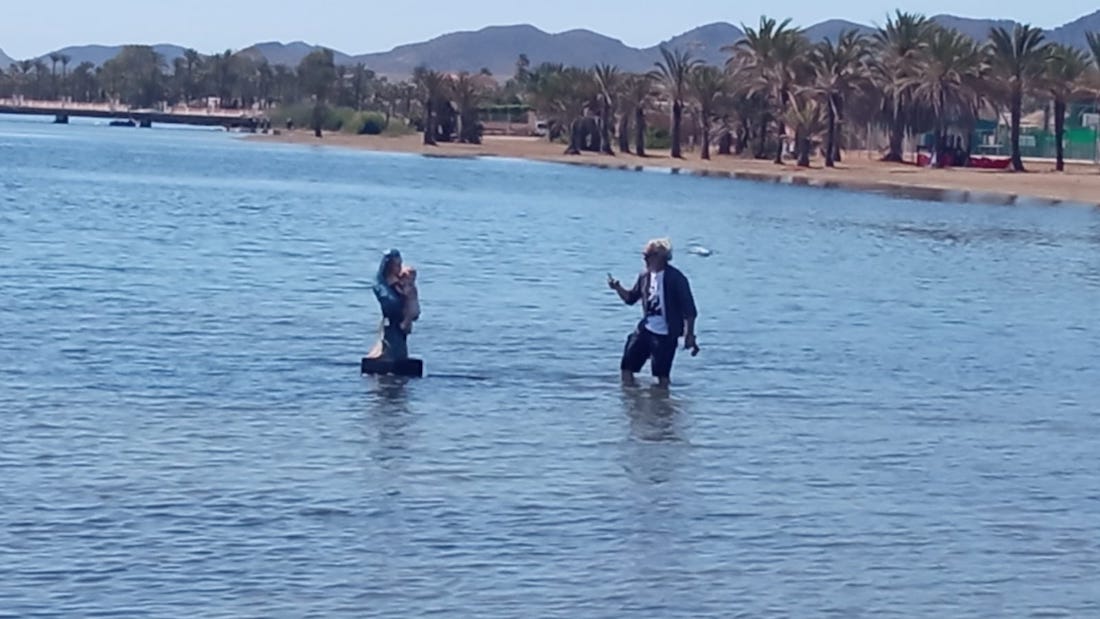 Es la traducción de 'Madonna dell’acqua lurida', título de la talla creada en material biodegradable que esta mañana, coincidiendo con el 'Día mundial de medio ambiente', han sido sumergida en el agua de Los Urrutias para expresar 'el malestar divino' por la contaminación del mar, siendo esta representación un preludio del documental-denuncia contra granjas de animales de la Región de Murcia que esta tarde se proyecta en Cartagena.