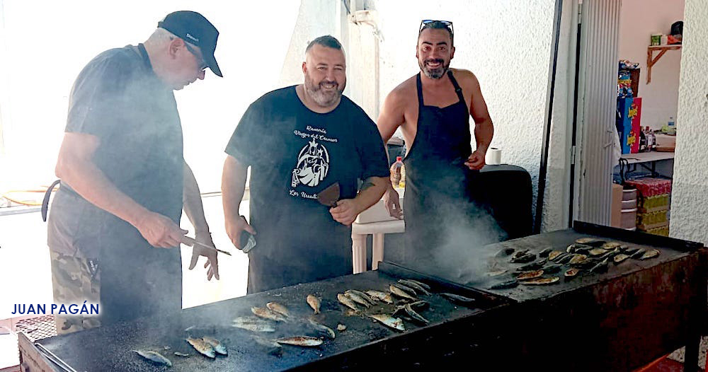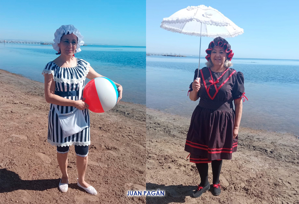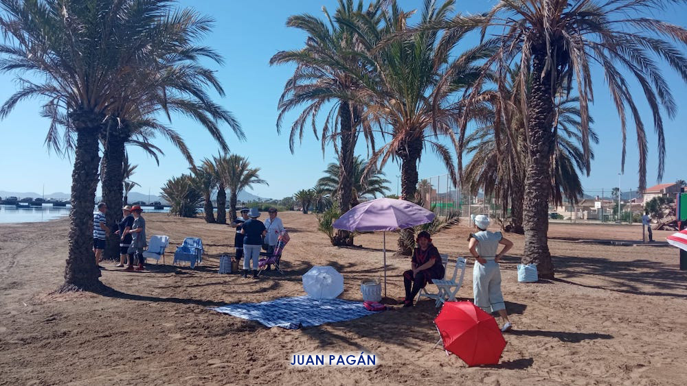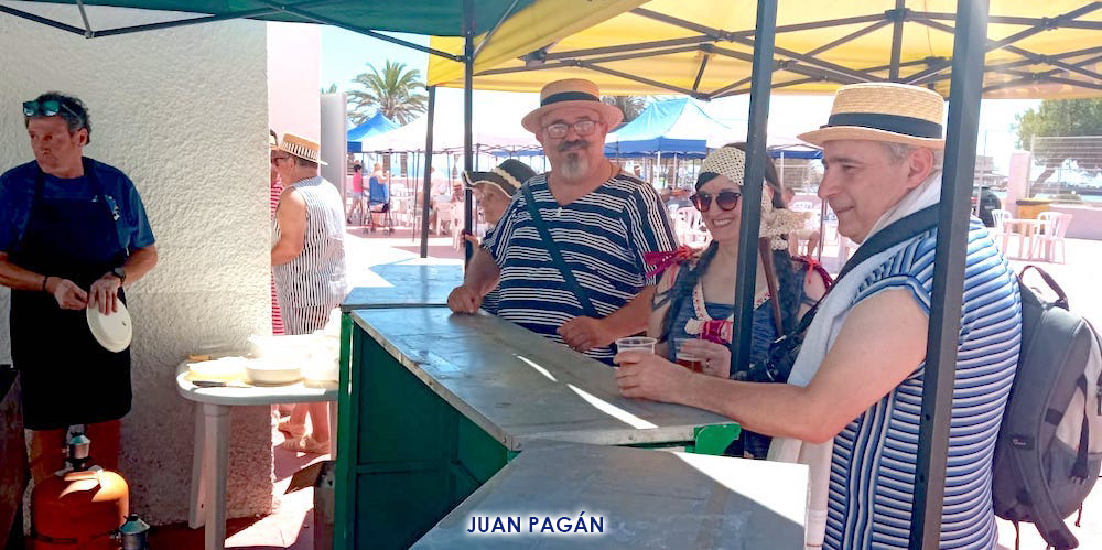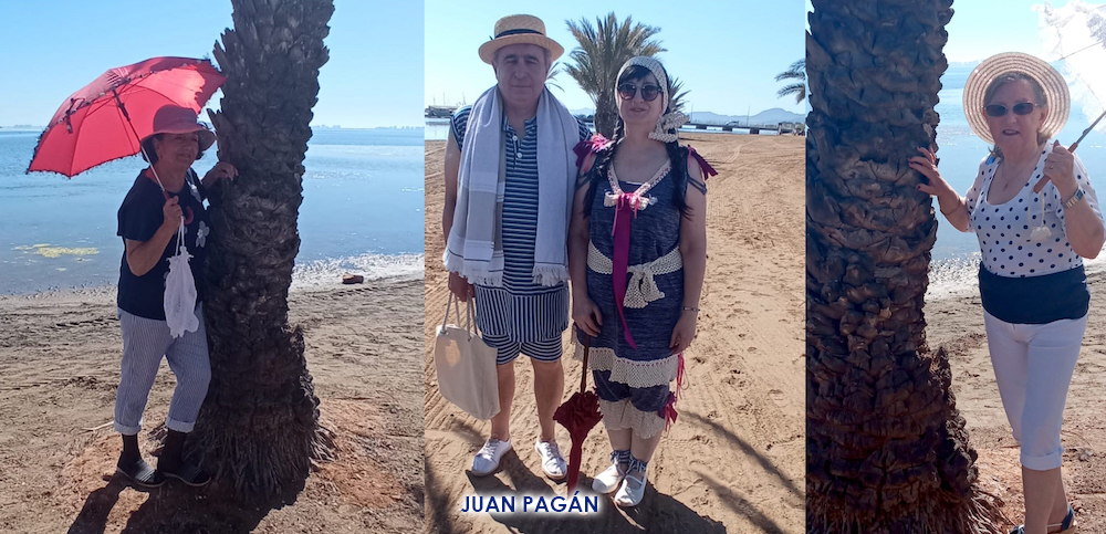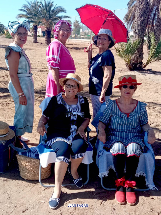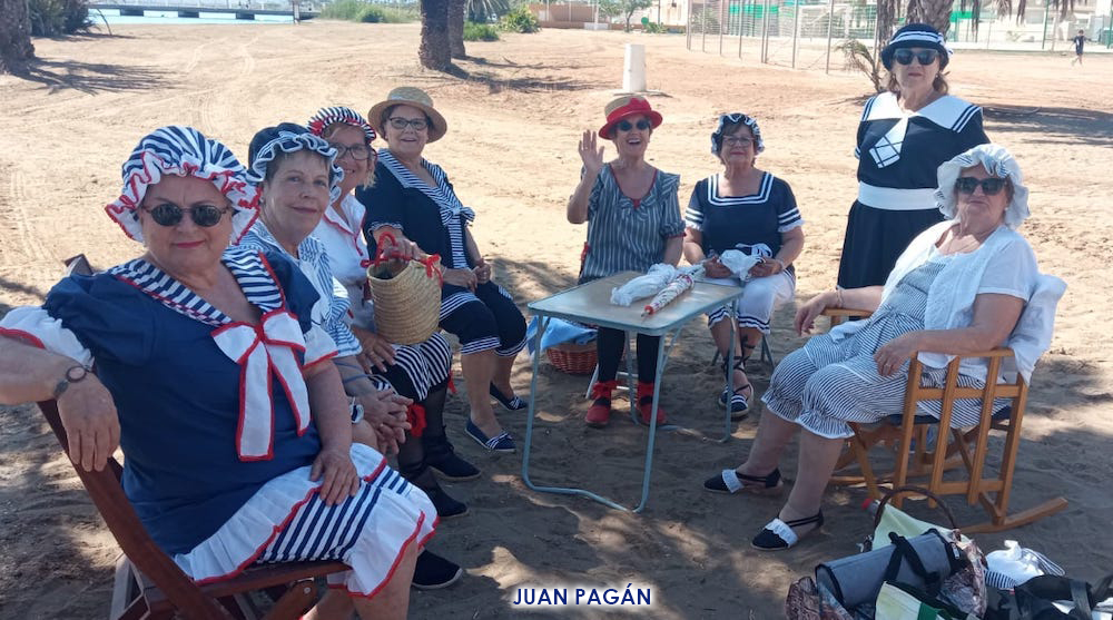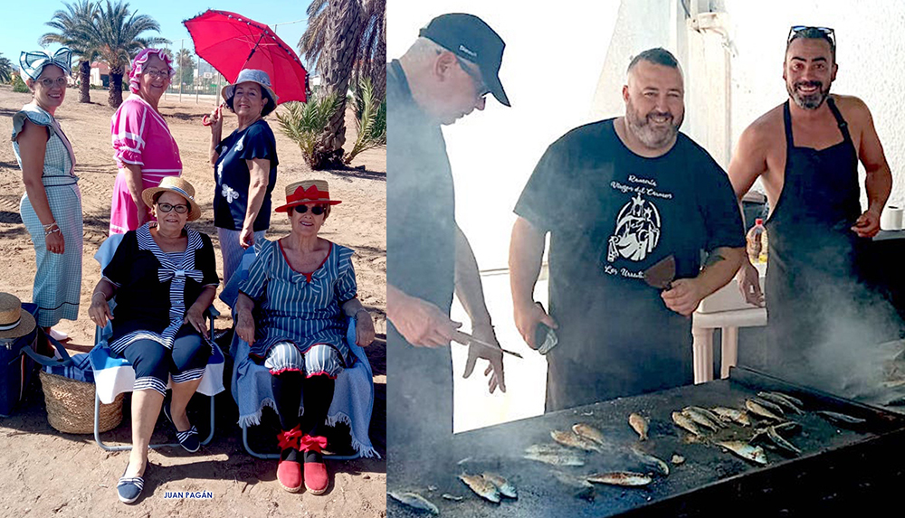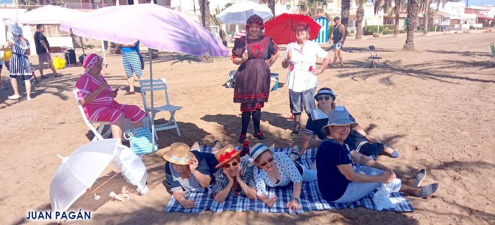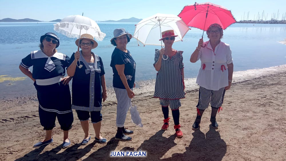 La asociación de vecinos de Los Urrutias ha ofrecido esta mañana una degustación de sardinas a la plancha que se ha visto enriquecida por el encanto de los bañadores de época de los modernistas de Cartagena, Novelda y Yecla.