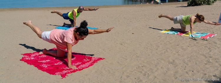 El Ayuntamiento ofrece clases gratis de aquagym, pilates, yoga, aerobic y gimnasia de mantenimiento este verano en catorce arenales de la costa cartagenera, entre los que figura Los Urrutias.