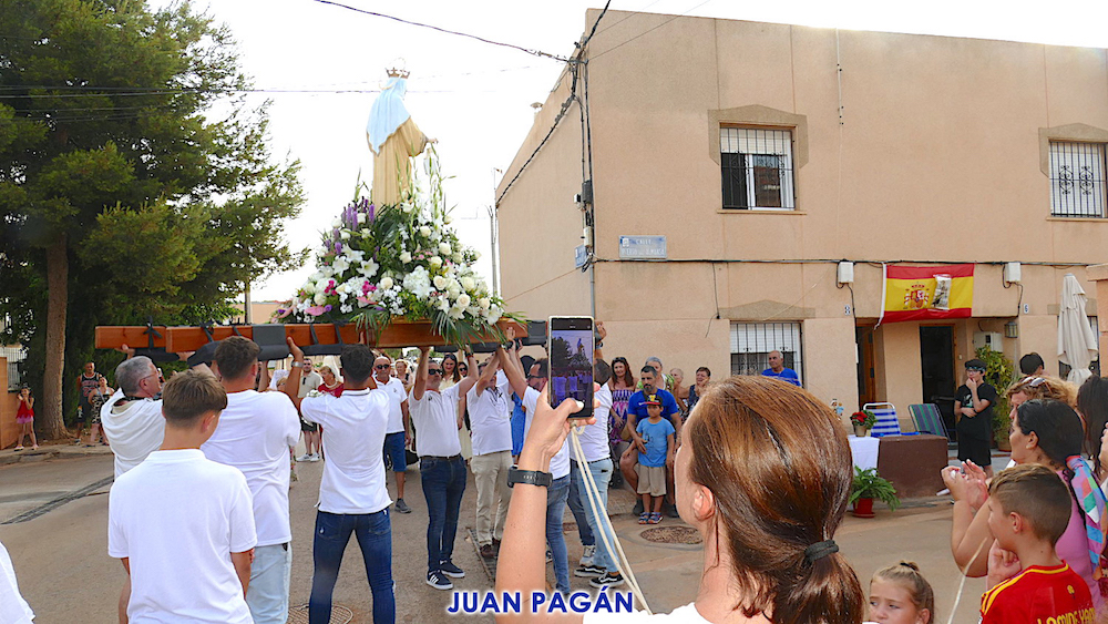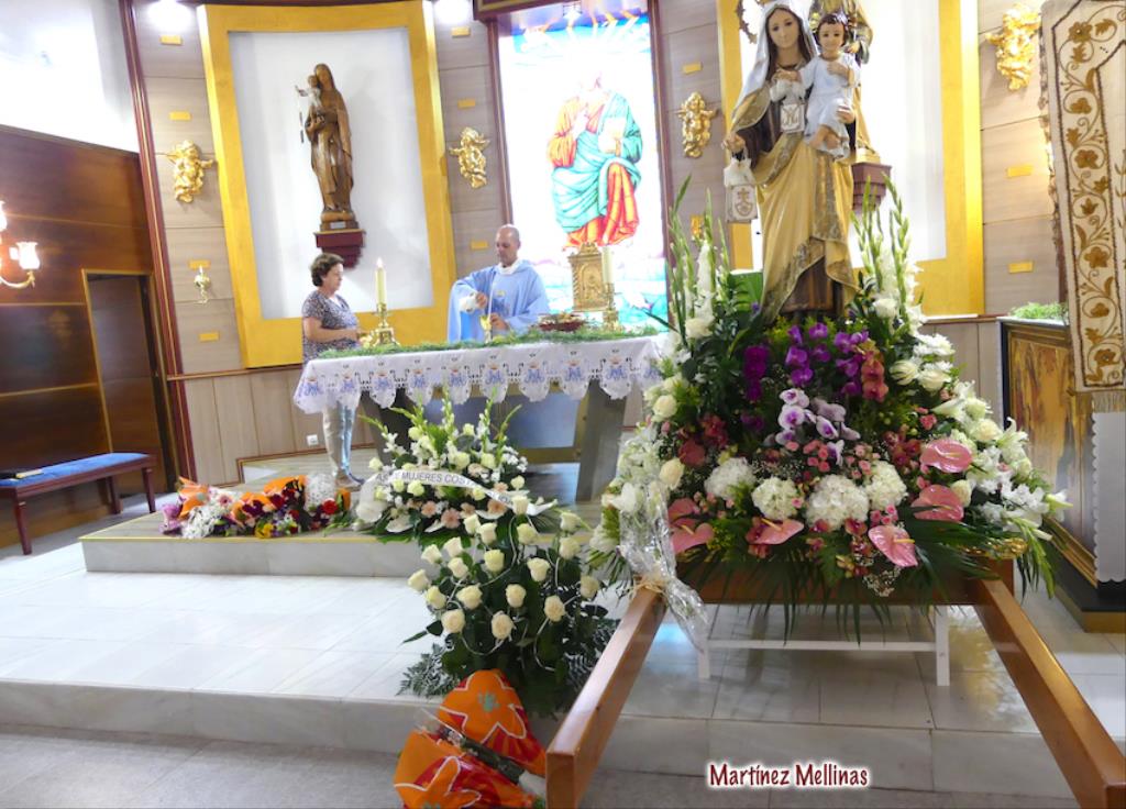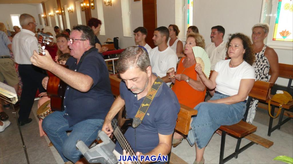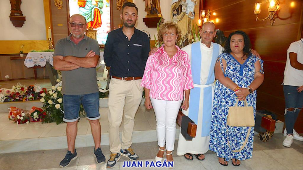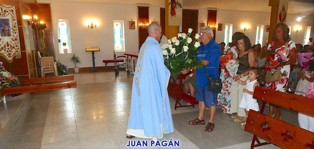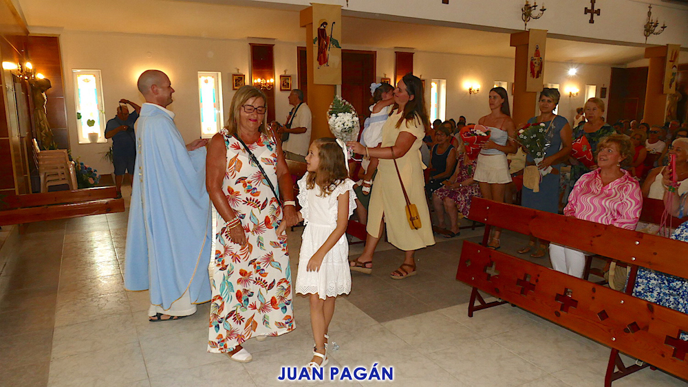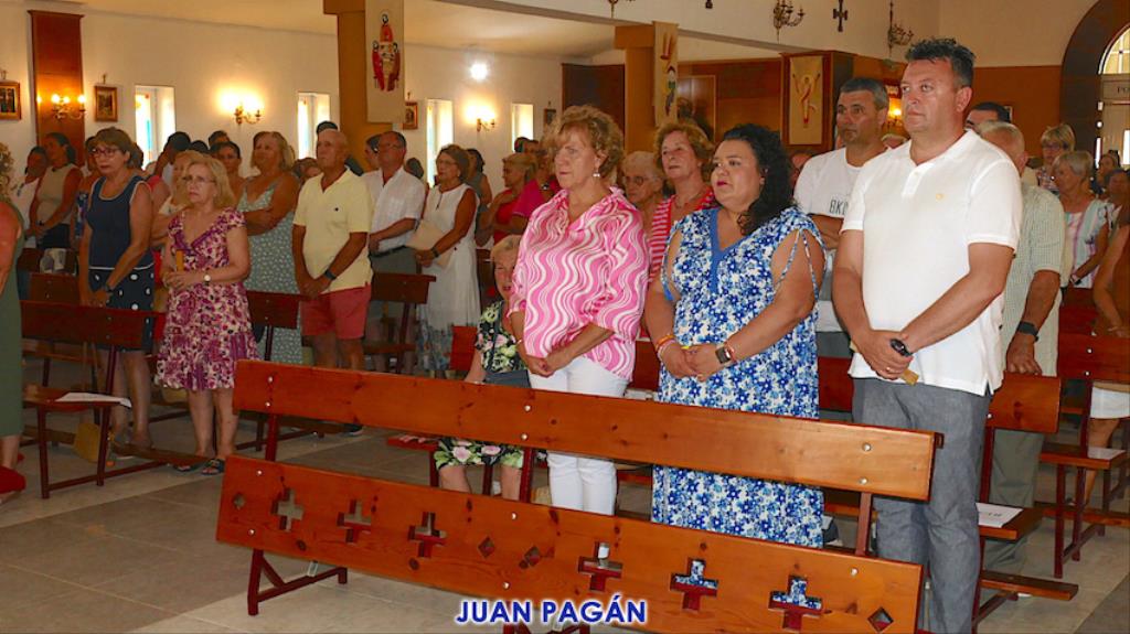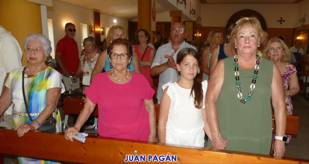 El acto religioso contó con la entrega de ofrendas y la presencia de la edil algareña Paqui Martínez Sotomayor y de la presidenta vecinal Rosell García, además del presidente de la Junta Vecinal Municipal de El Algar, Salvador García, y de Francisco Ramón García, concejal del Ayuntamiento de La Unión.