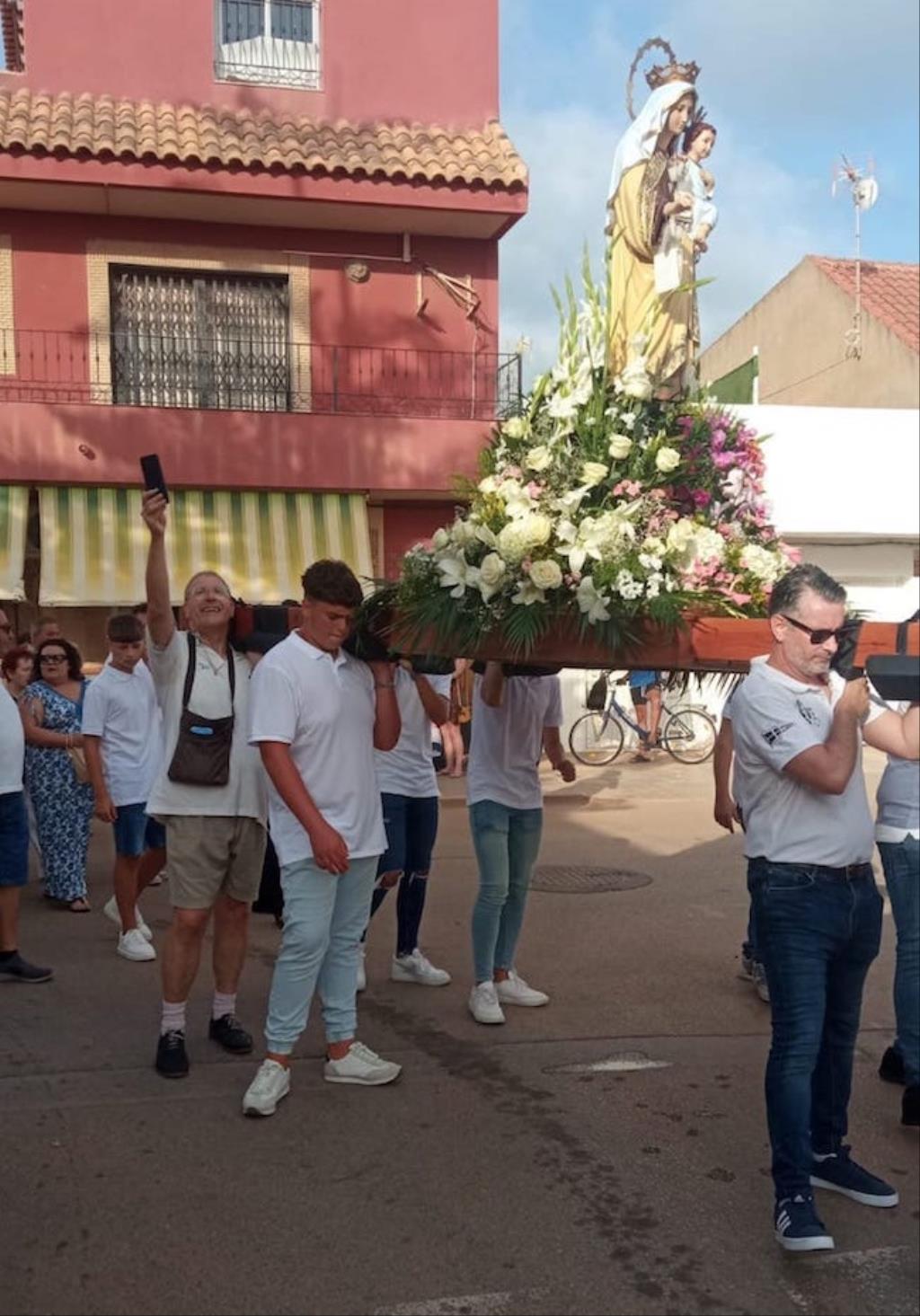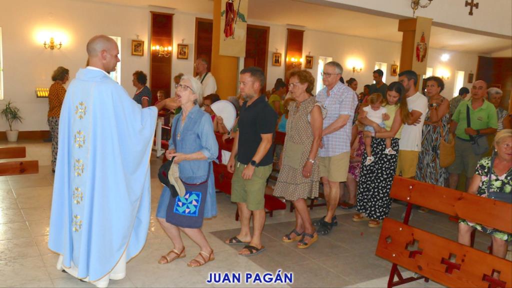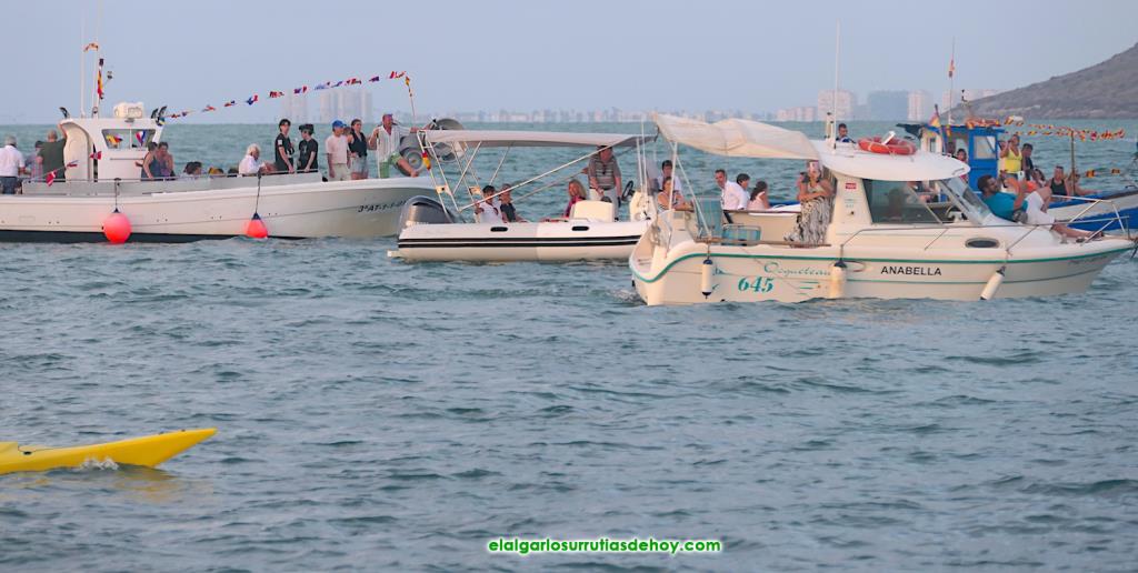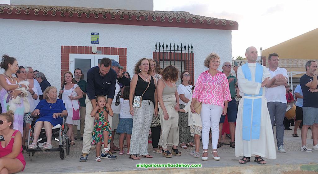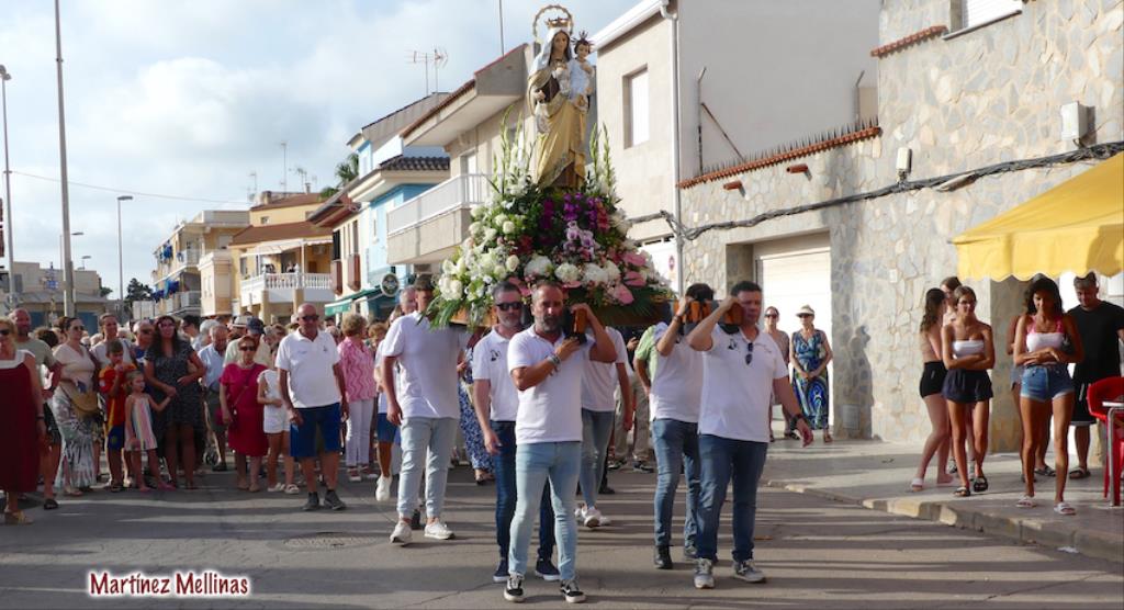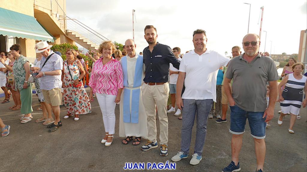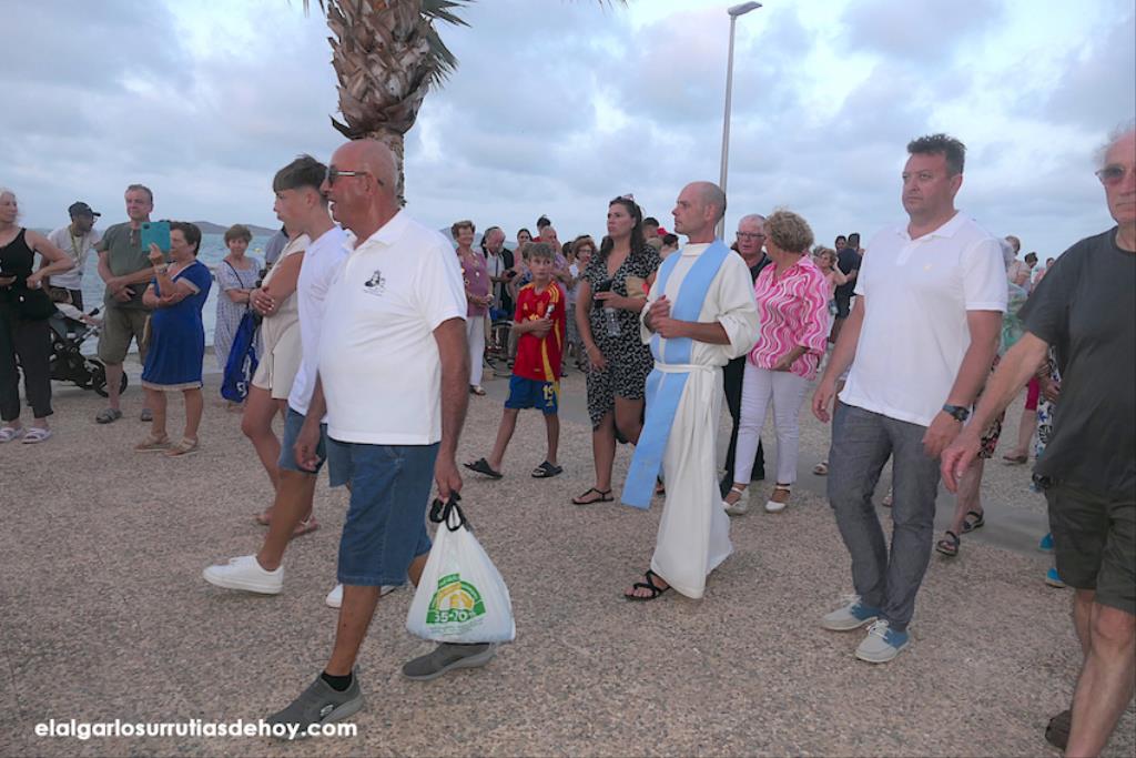 El gran día de la Virgen del Carmen tuvo un intenso capítulo vespertino que comenzó con la celebración de la solemne misa en la parroquia que lleva su nombre en Los Urrutias, siendo oficiada por el sacerdote Antonio Guillén Campillo.