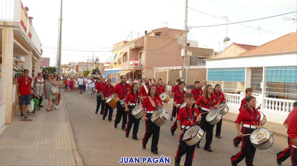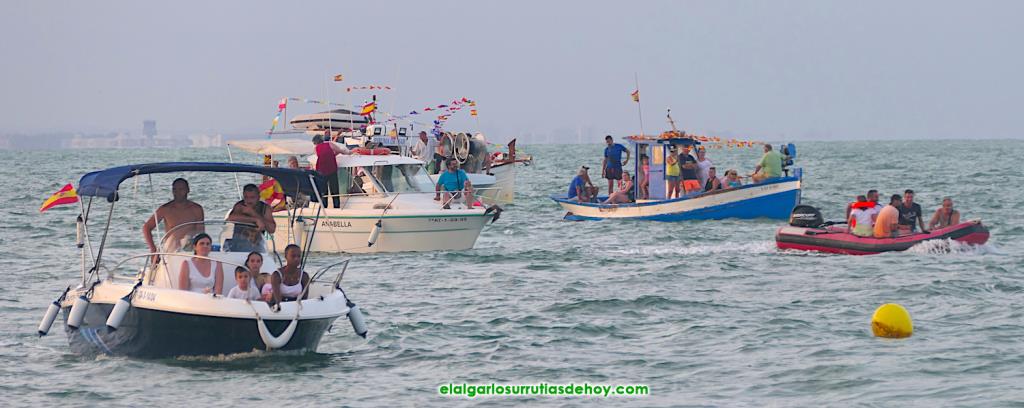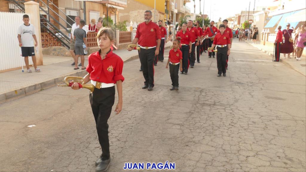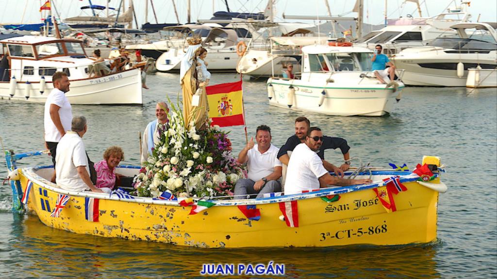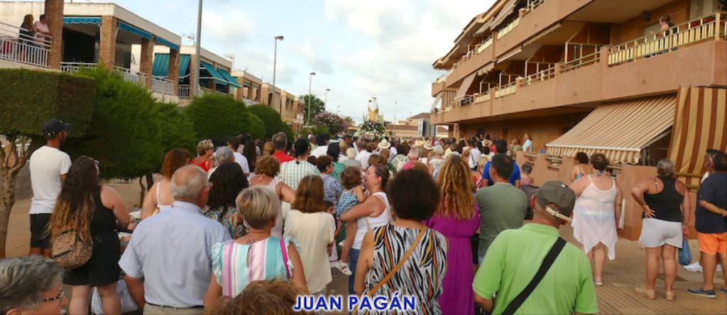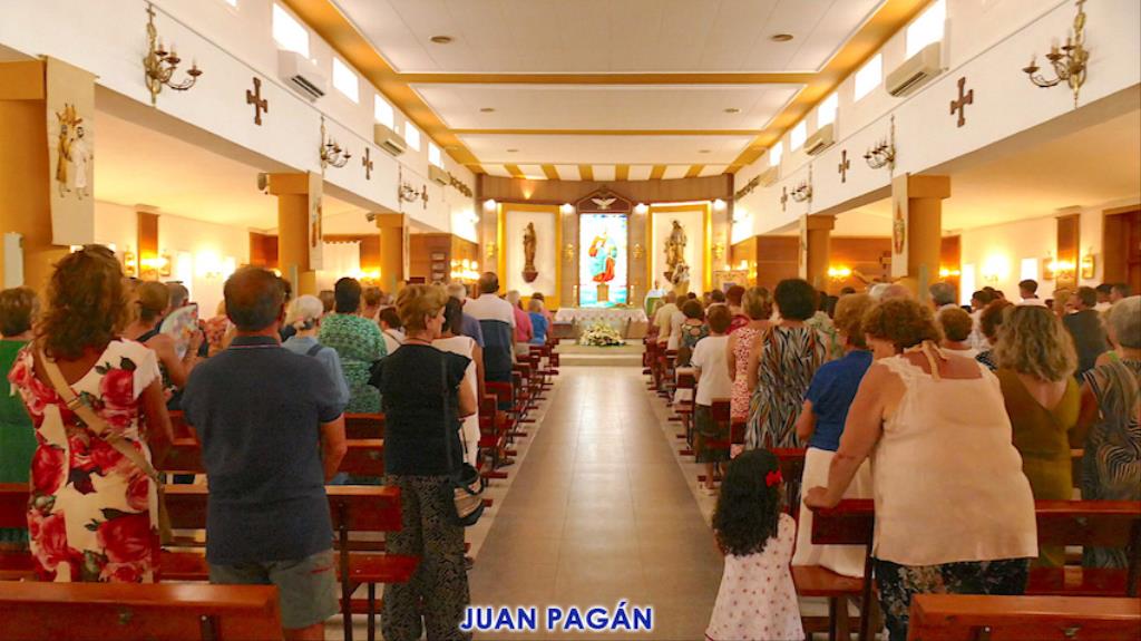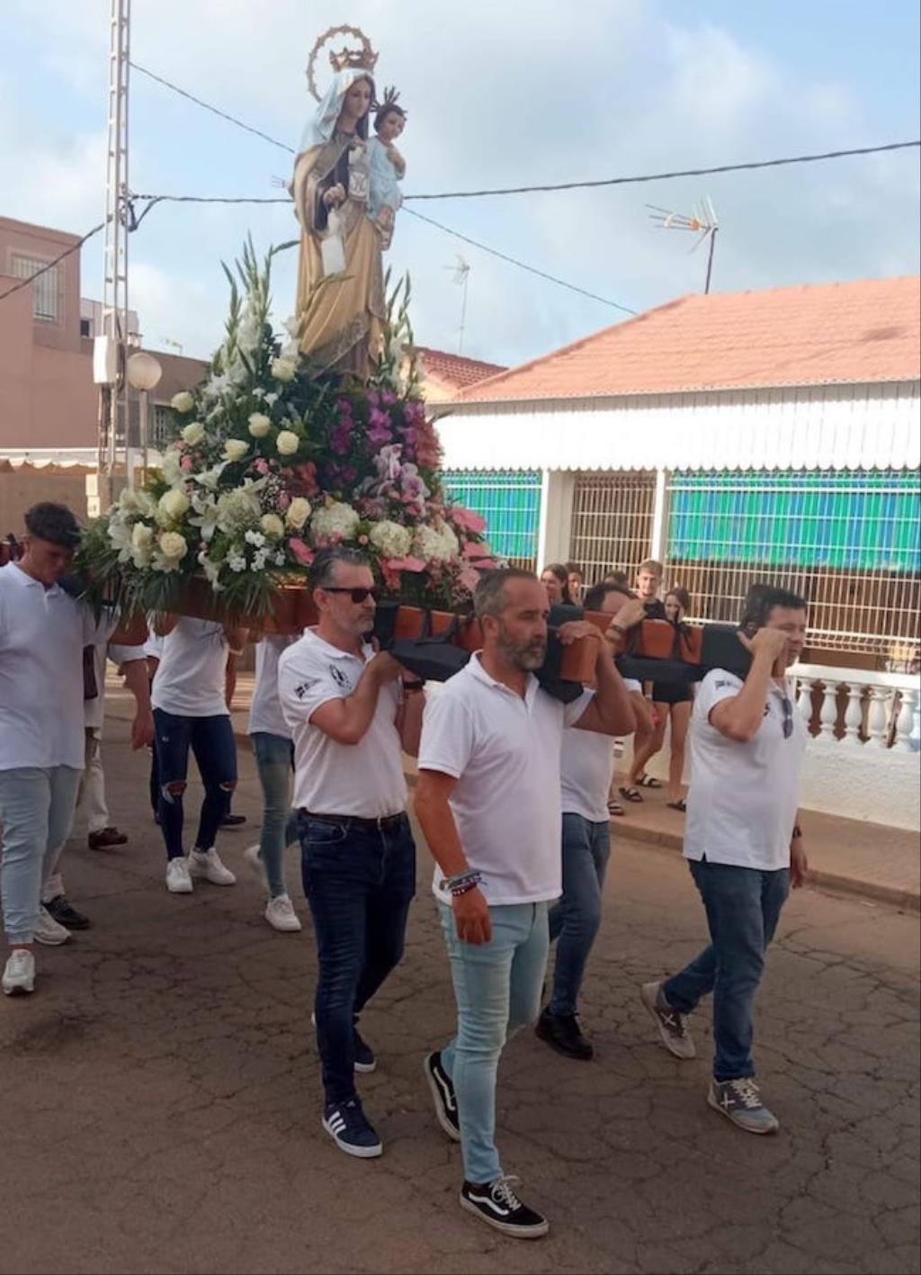 El gran día de la Virgen del Carmen tuvo un intenso capítulo vespertino que comenzó con la celebración de la solemne misa en la parroquia que lleva su nombre en Los Urrutias, siendo oficiada por el sacerdote Antonio Guillén Campillo.