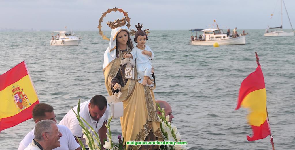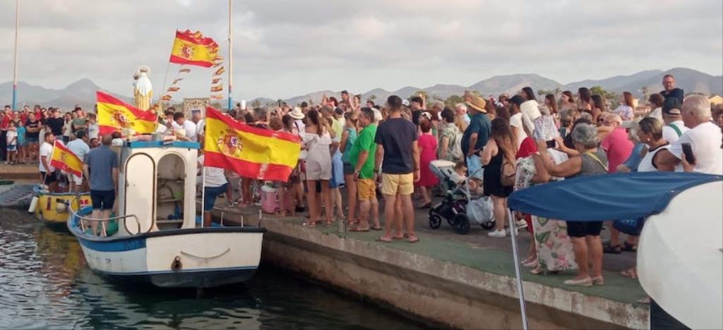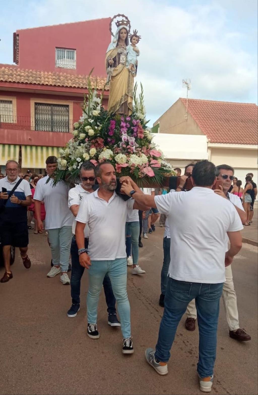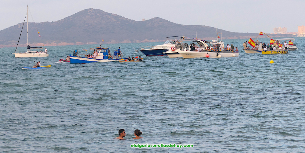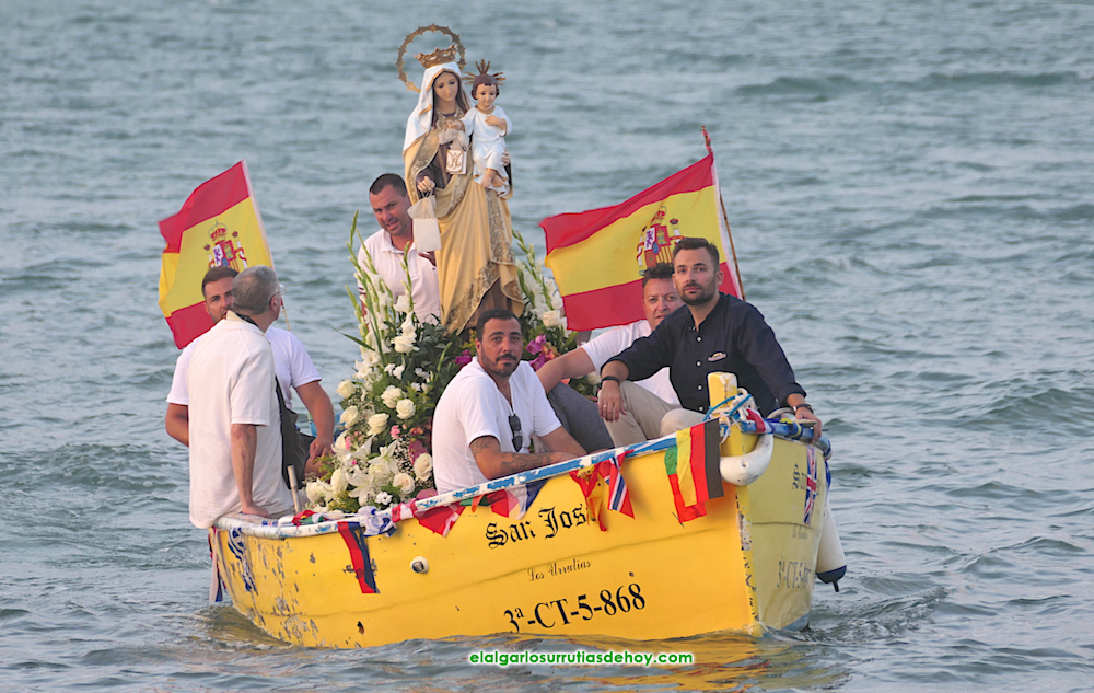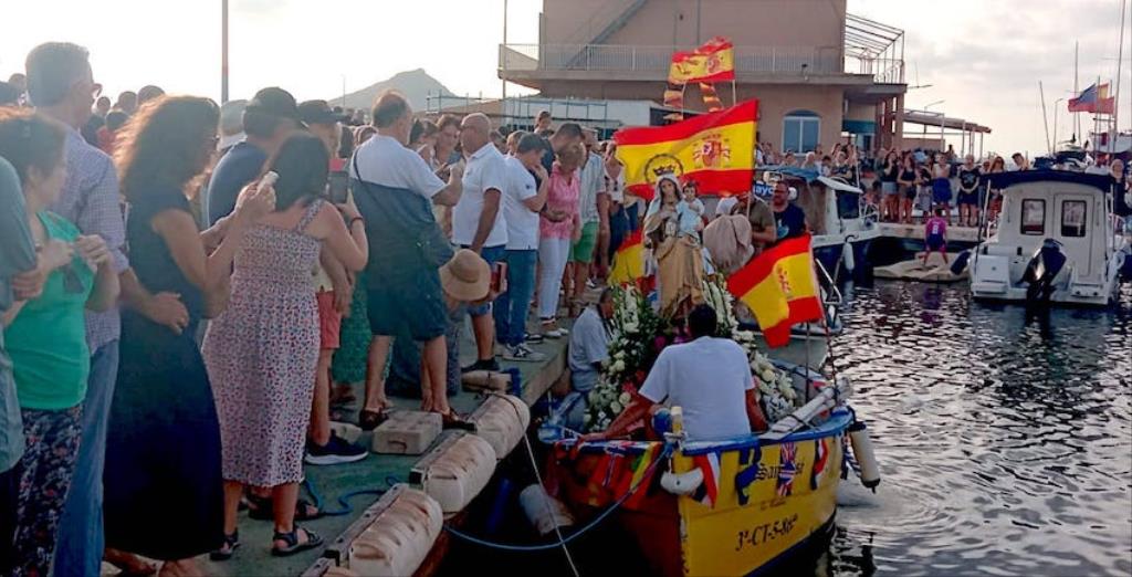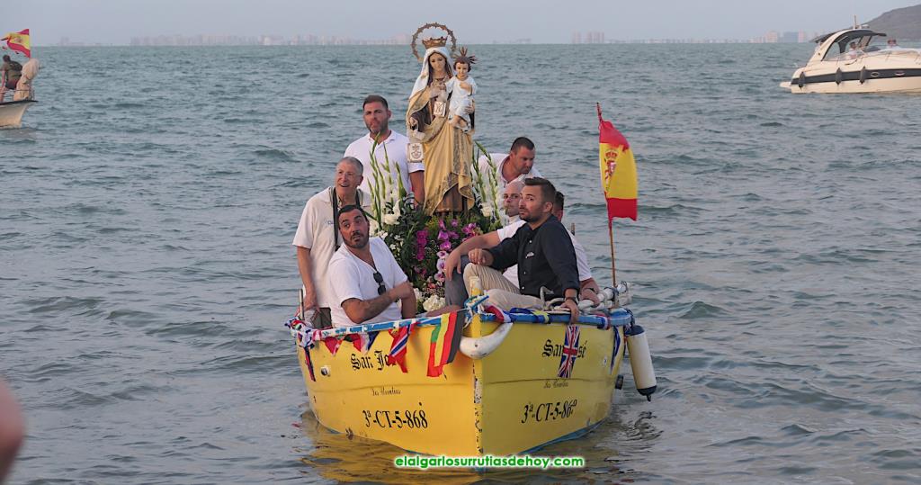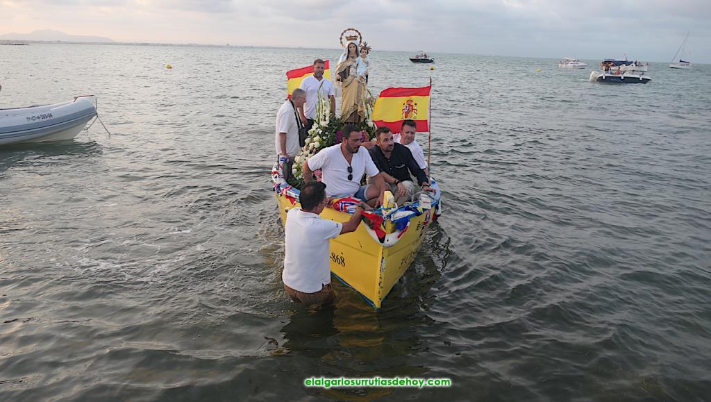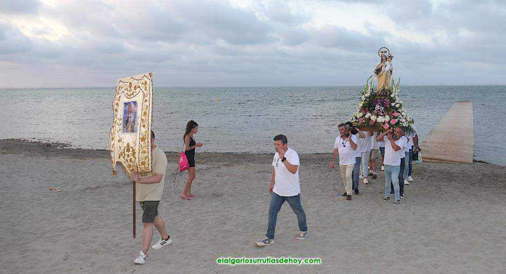 Después de la solemne misa en su honor y la primera parte de la procesión terrestre hasta que se embarcó en el club náutico de Los Urrutias, la imagen de Nuestra Señora del Carmen tardó en pasar al embarcadero de Punta Brava por las maniobras que hubo que llevar a cabo debido al mínimo calado, reanudando a continuación su 'paseo' por tierra hasta su templo sobre hombros rejuvenecidos por la incorporación de jóvenes.