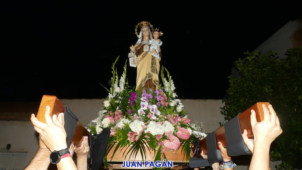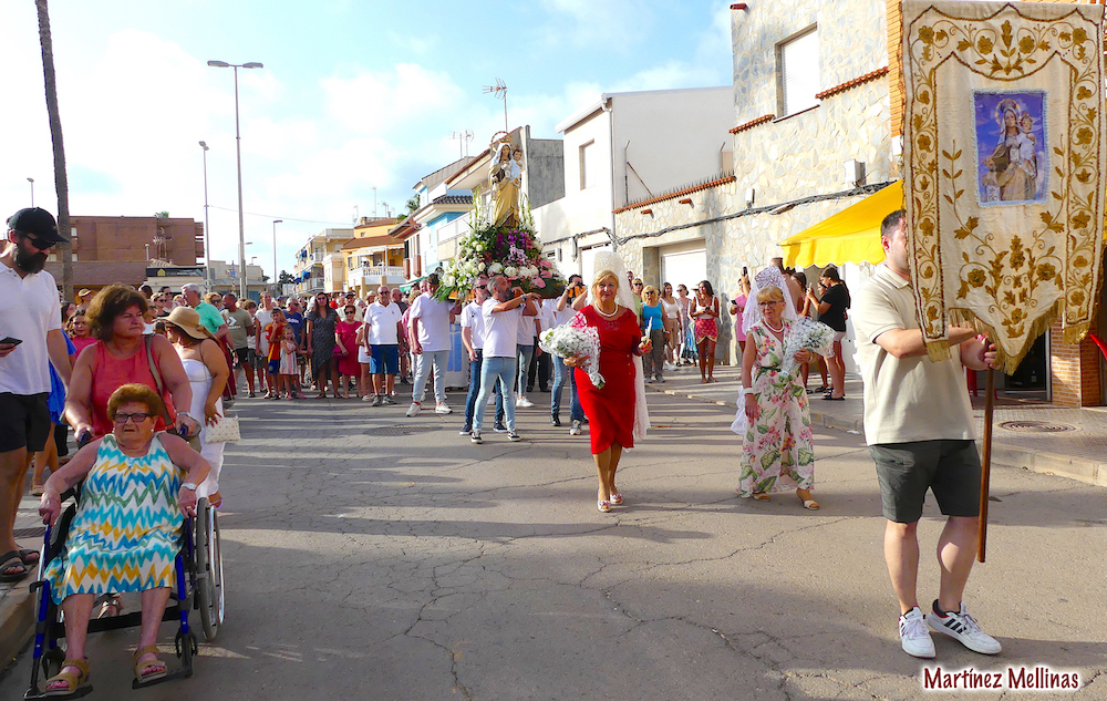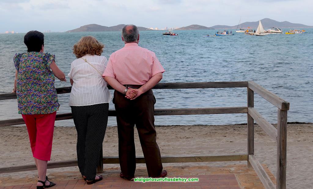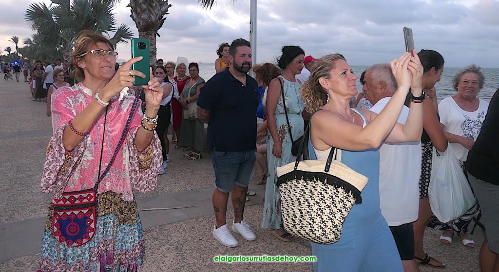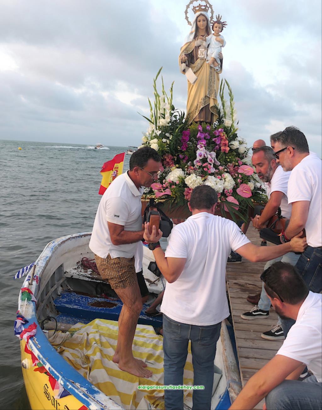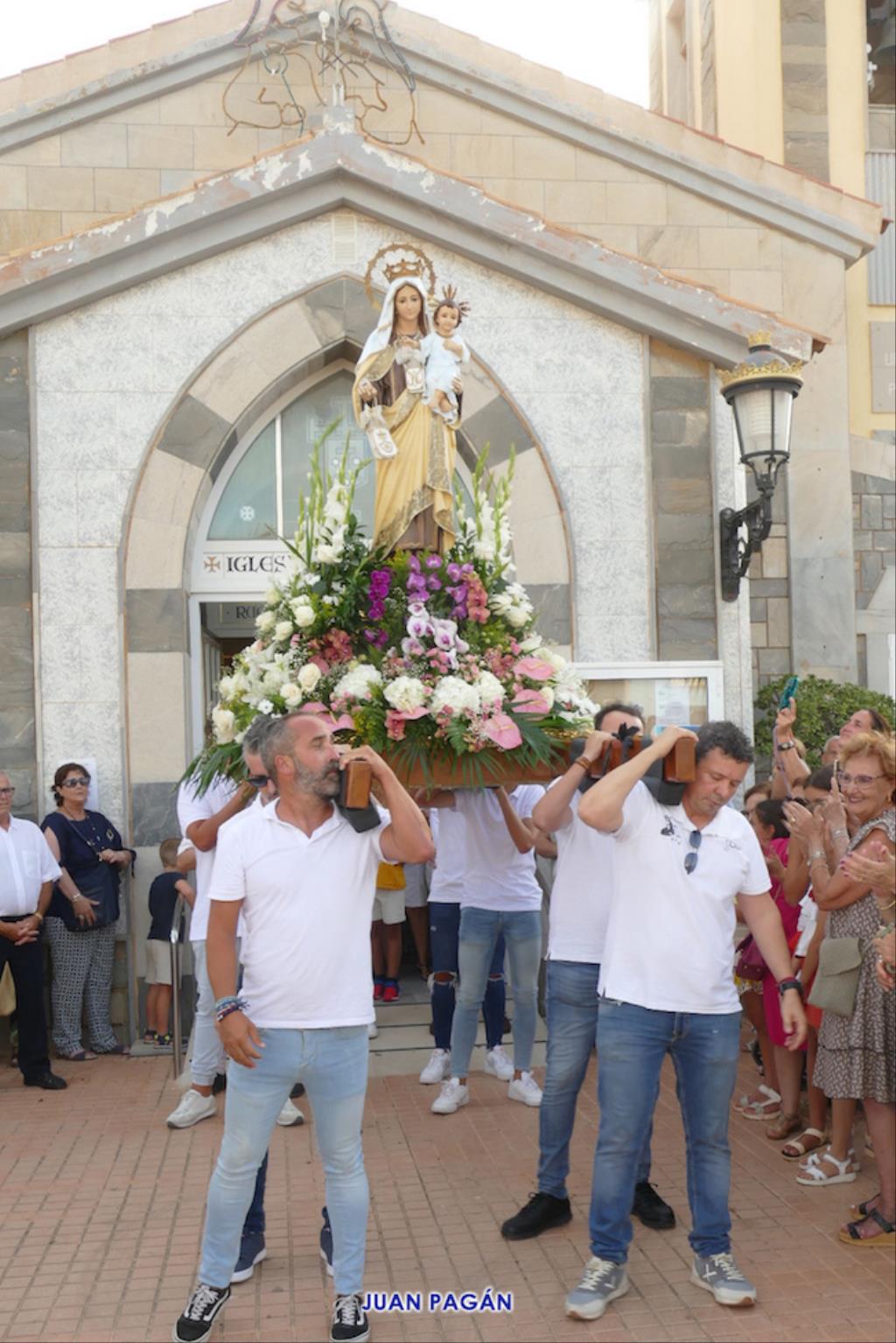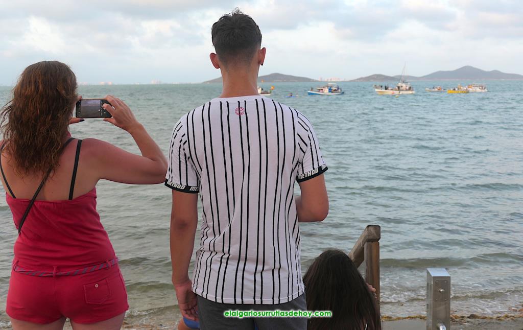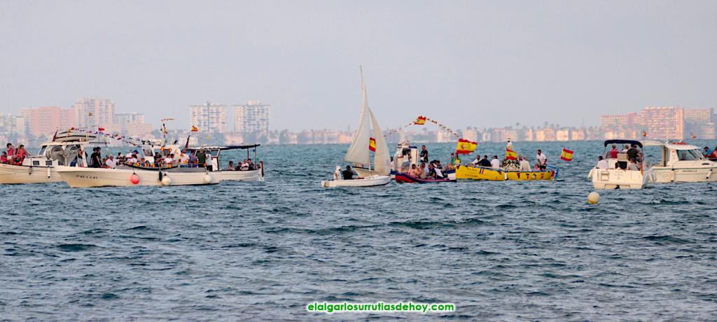 Después de la solemne misa en su honor y la primera parte de la procesión terrestre hasta que se embarcó en el club náutico de Los Urrutias, la imagen de Nuestra Señora del Carmen tardó en pasar al embarcadero de Punta Brava por las maniobras que hubo que llevar a cabo debido al mínimo calado, reanudando a continuación su 'paseo' por tierra hasta su templo sobre hombros rejuvenecidos por la incorporación de jóvenes.