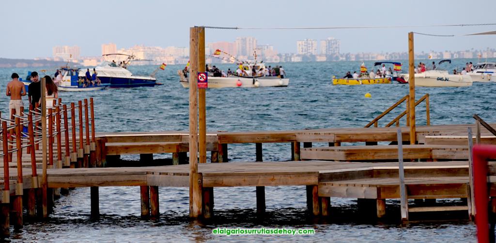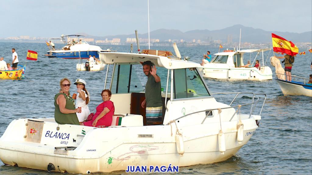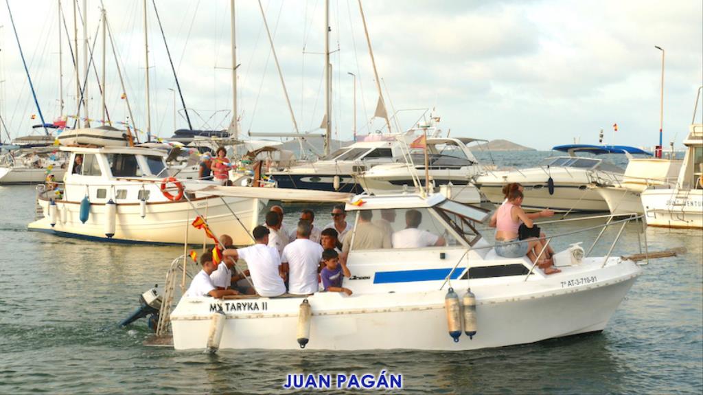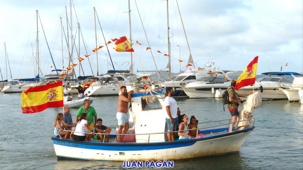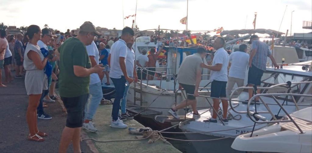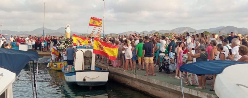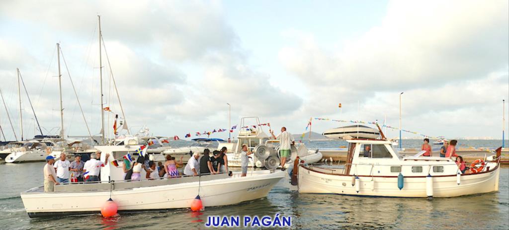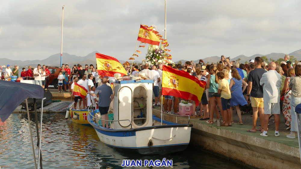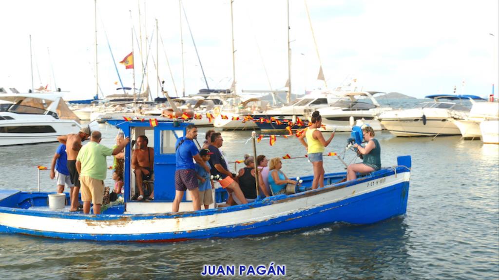 El destino era el puerto del Club Náutico de Los Urrutias, donde, ante una multitud, la patrona del mar fue embarcada en el bote 'San José', donde la imagen fue acompañada, entre otros, por los concejales antes nombrados y por el presidente de la Junta Vecinal.