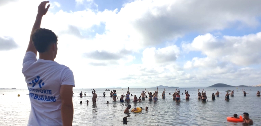 El Ayuntamiento de Cartagena sigue este mes de agosto ofreciendo clases gratis de aquagym, pilates, yoga, aerobic y gimnasia de mantenimiento este verano en catorce arenales de la costa cartagenera, entre los que figura Los Urrutias.