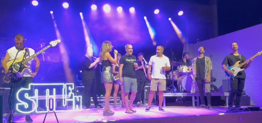 Los hermanos Guillermo y Pablo, 'Los Mellis', escucharon el popular 'cumpleaños feliz' cantando por el grupo 'Stolen' y los asistentes a una de las veladas nocturnas de las fiestas de Los Urrutias.