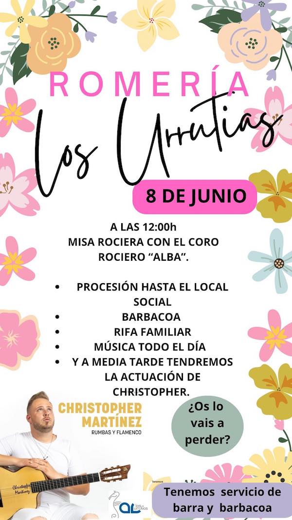 Después de una fugaz ubicación en 2024 en el mes de octubre, la popular fiesta que organiza la Asociación de Vecinos de Los Urrutias regresa a sus fecha habituales y se celebrará el segundo domingo del próximo mes, siendo el punto de partida la eucaristía que, con coro rociero, se celebrará en la iglesia de la Virgen del Carmen, para después comenzar la procesión hacia el local social, donde habrá barbacoa, música (actuará Christopher Martínez), rifa familiar, etc.