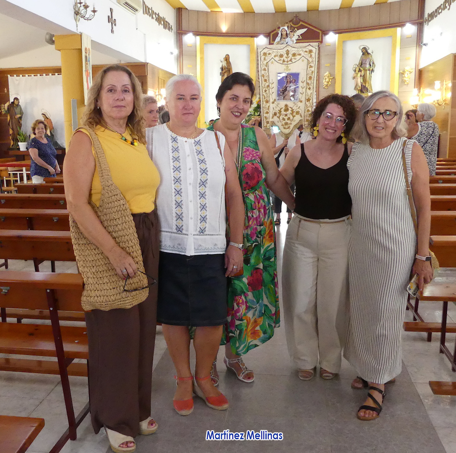 La concejala Paqui Martínez Sotomayor, el presidente de la Junta Vecinal Municipal de El Algar (Salvador García) y la presidenta de la Asociación de Vecinos de Los Urrutias (Rosell García) durante el desarrollo de la eucaristía que ofició el sacerdote Antonio Guillén Campillo.