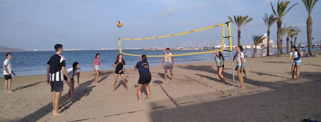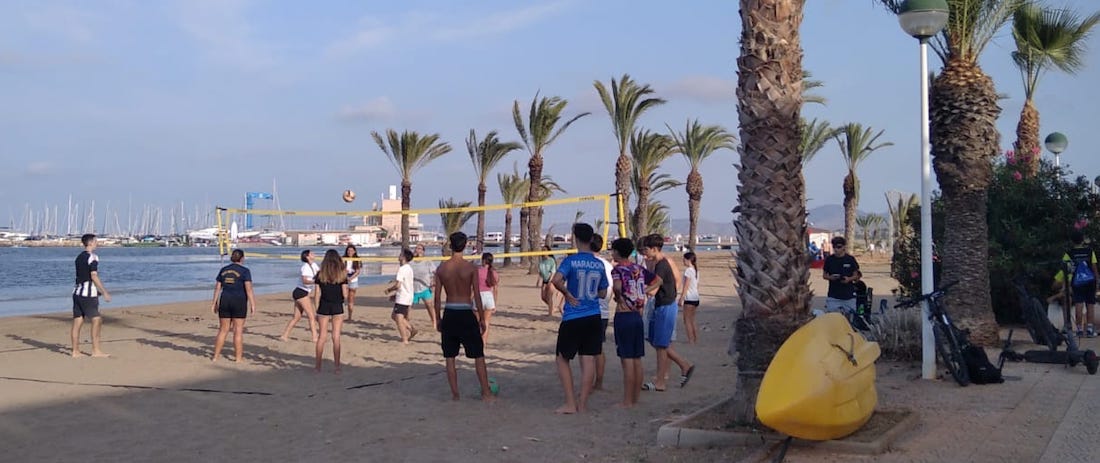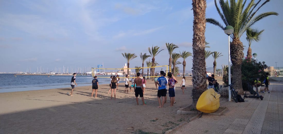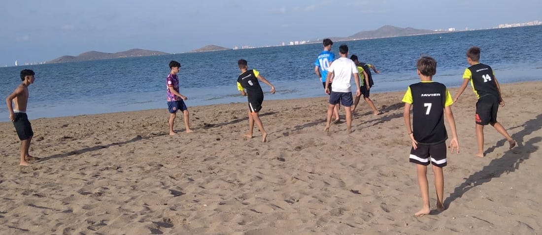 El verano traslada a las playas los terrenos de juego habituales en el mundo del deporte y ayer tarde Los Urrutias fue el marco donde se desarrollaron encuentro entre jóvenes de fútbol y voley playa.