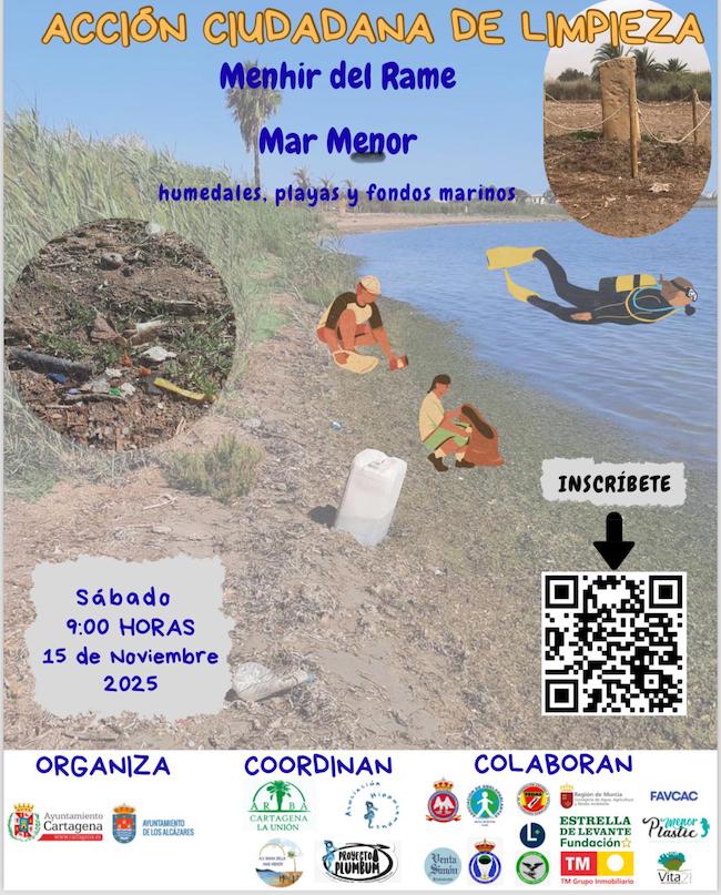 Este sábado próximo, el paraje natural del ‘Menhir del Rame’ de Bahía Bella será el escenario de una jornada ambiental sin precedentes mediante la realización de una macro limpieza-terrestre y subacuática en el Mar Menor, sus humedales, playas y fondos marinos. Por primera vez, participarán buzos especializados con detectores de metales.
