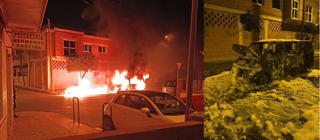 El vandalismo continúa en las calles del pueblo algareño por tercera noche consecutiva. A los 16 contenedores que ardieron las dos madrugadas anteriores, hay que ampliar la suma con los de anoche, que además provocaron que ardiera la furgoneta de un vecino.